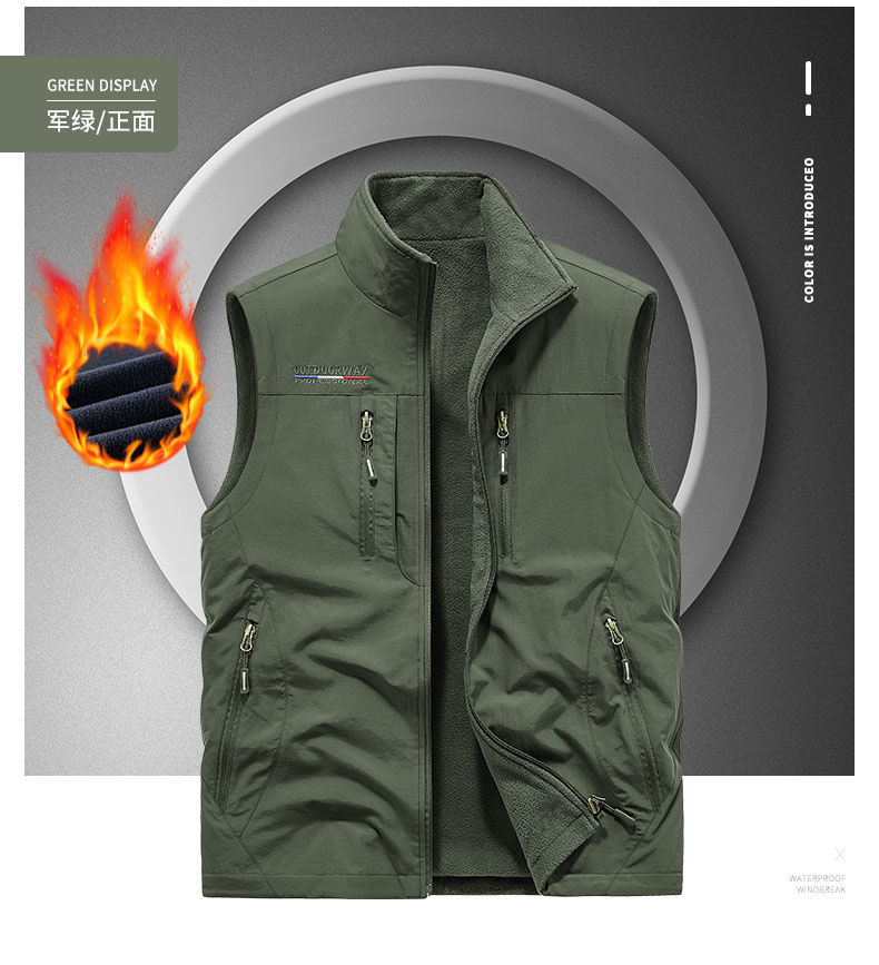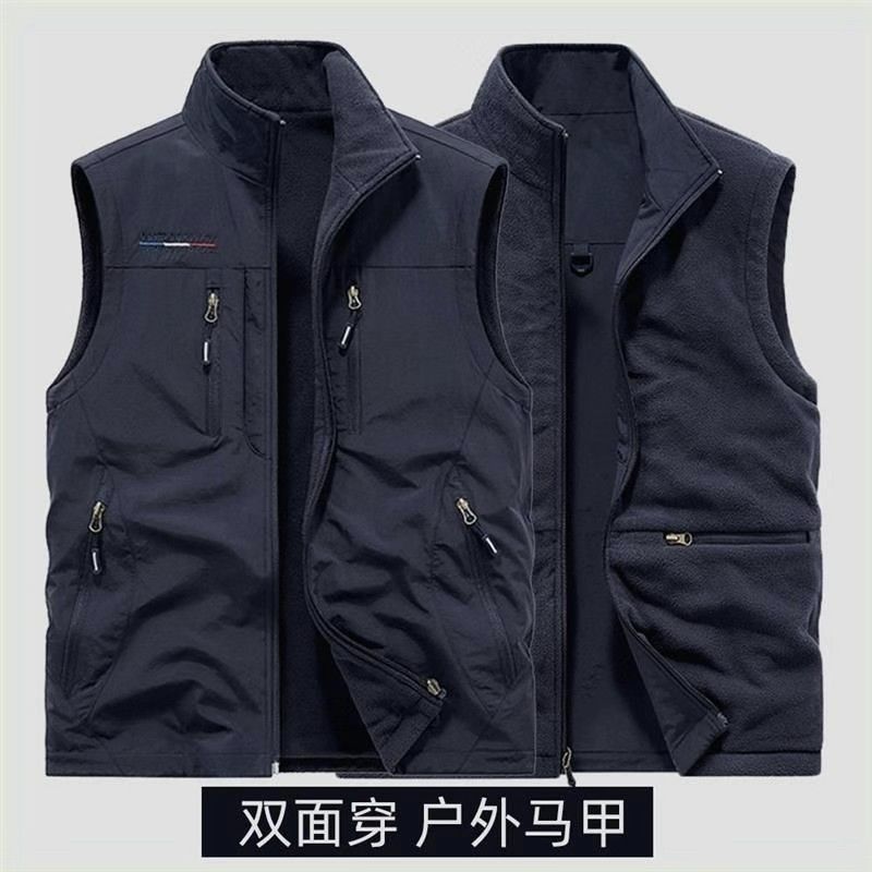 1906-8 Карманный осенний и зимний двухсторонний мужской наружный ворс жилет с флисом