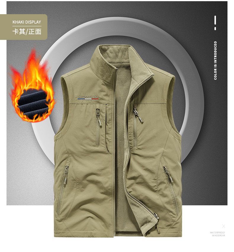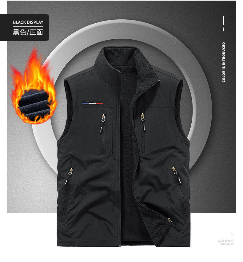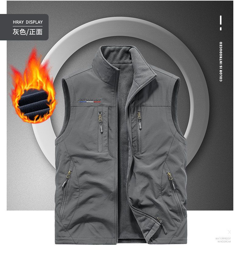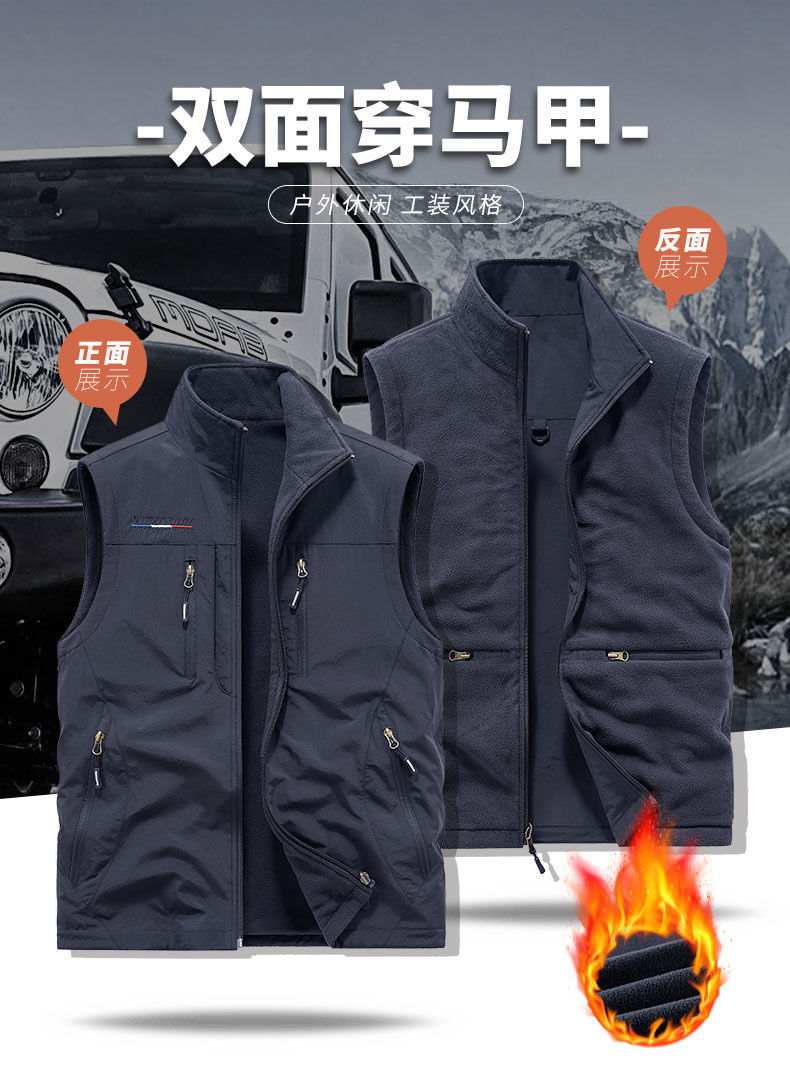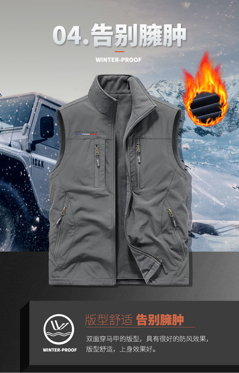 秋冬双面穿马甲男士户外运动抓绒背心摇粒绒坎肩加绒加厚马夹外套
