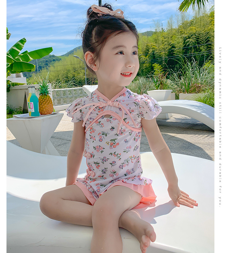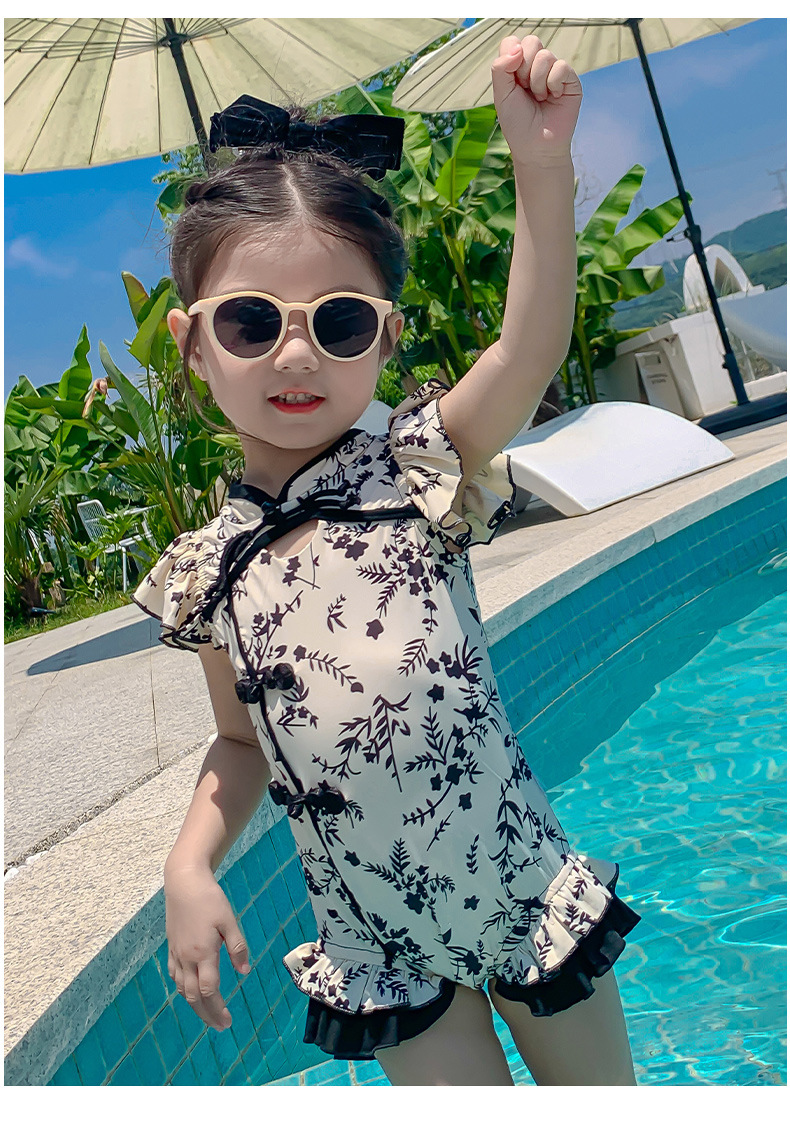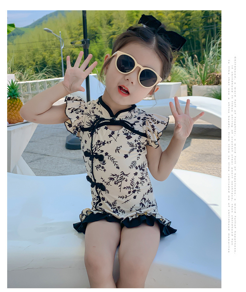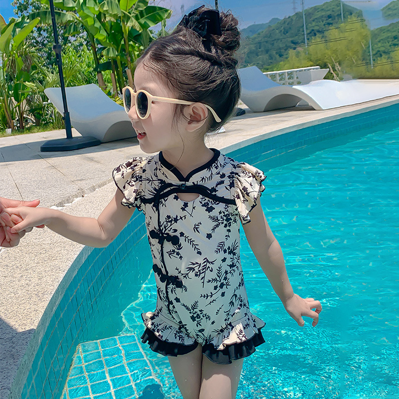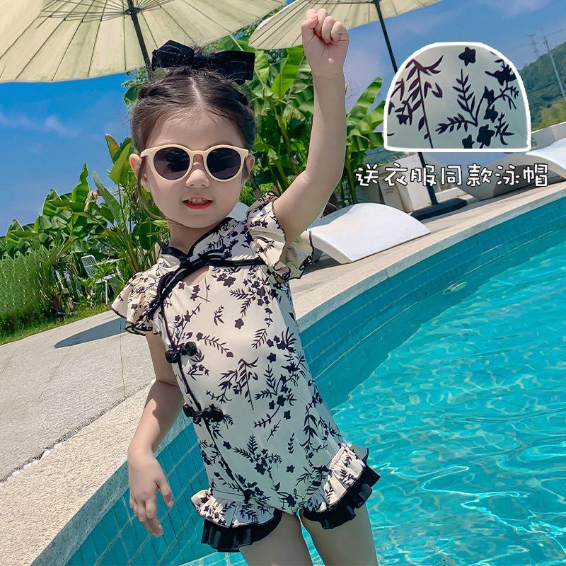 Купальник для девочек лето 2024 новый стиль baby baby китайский стиль принт купальник красная девушка цельный детский купальник