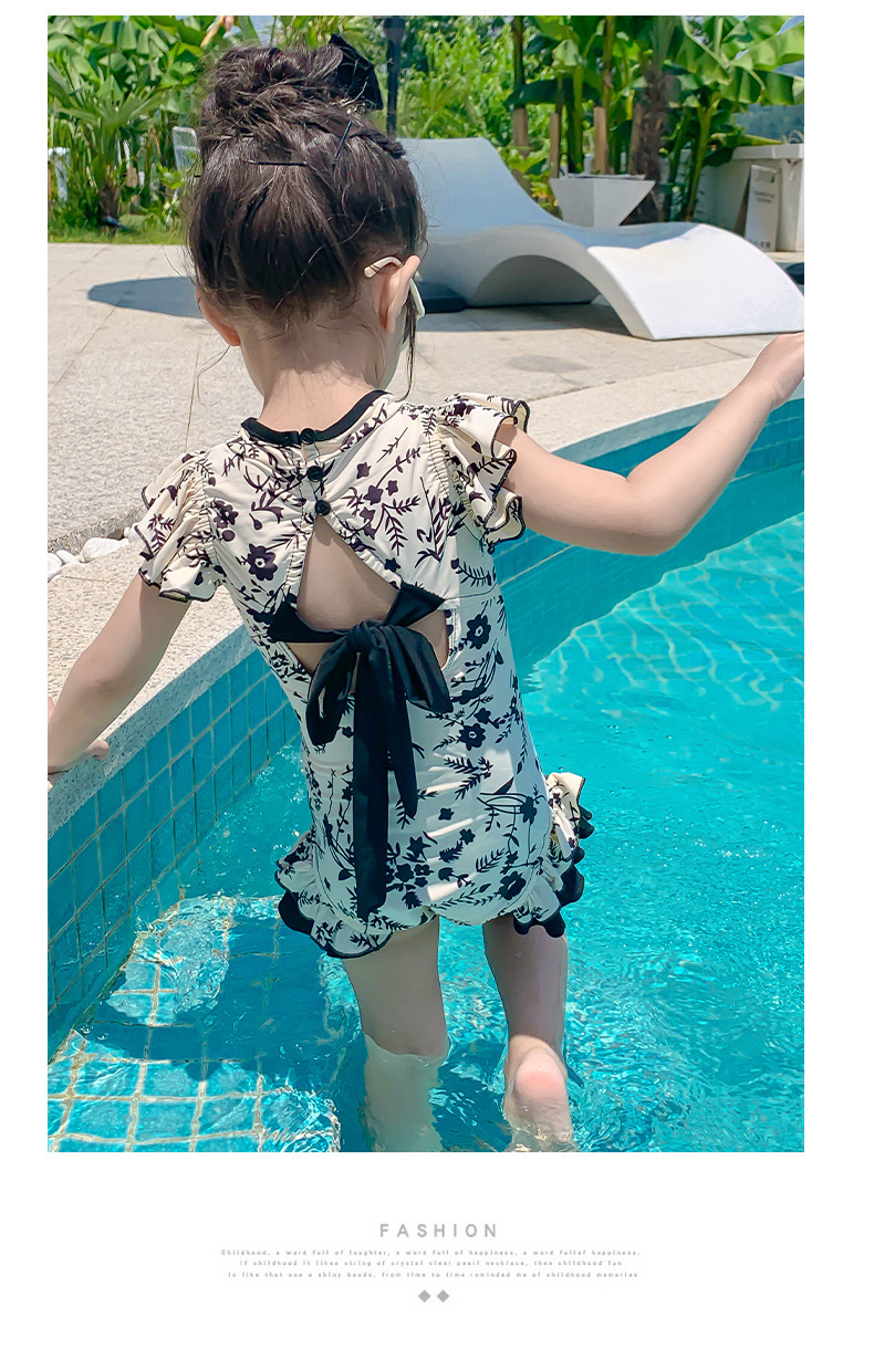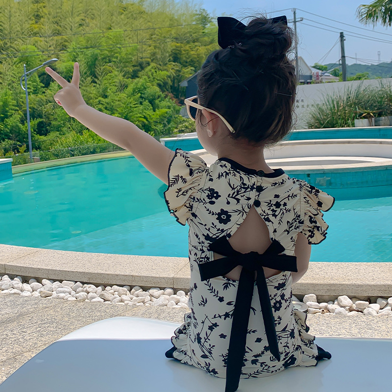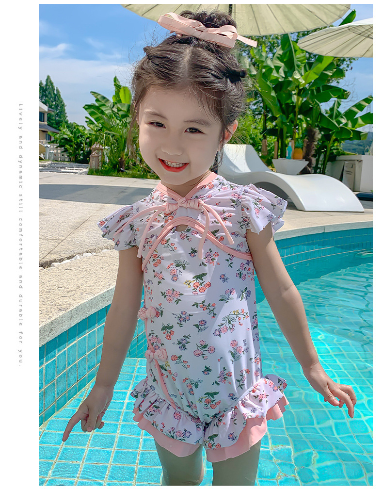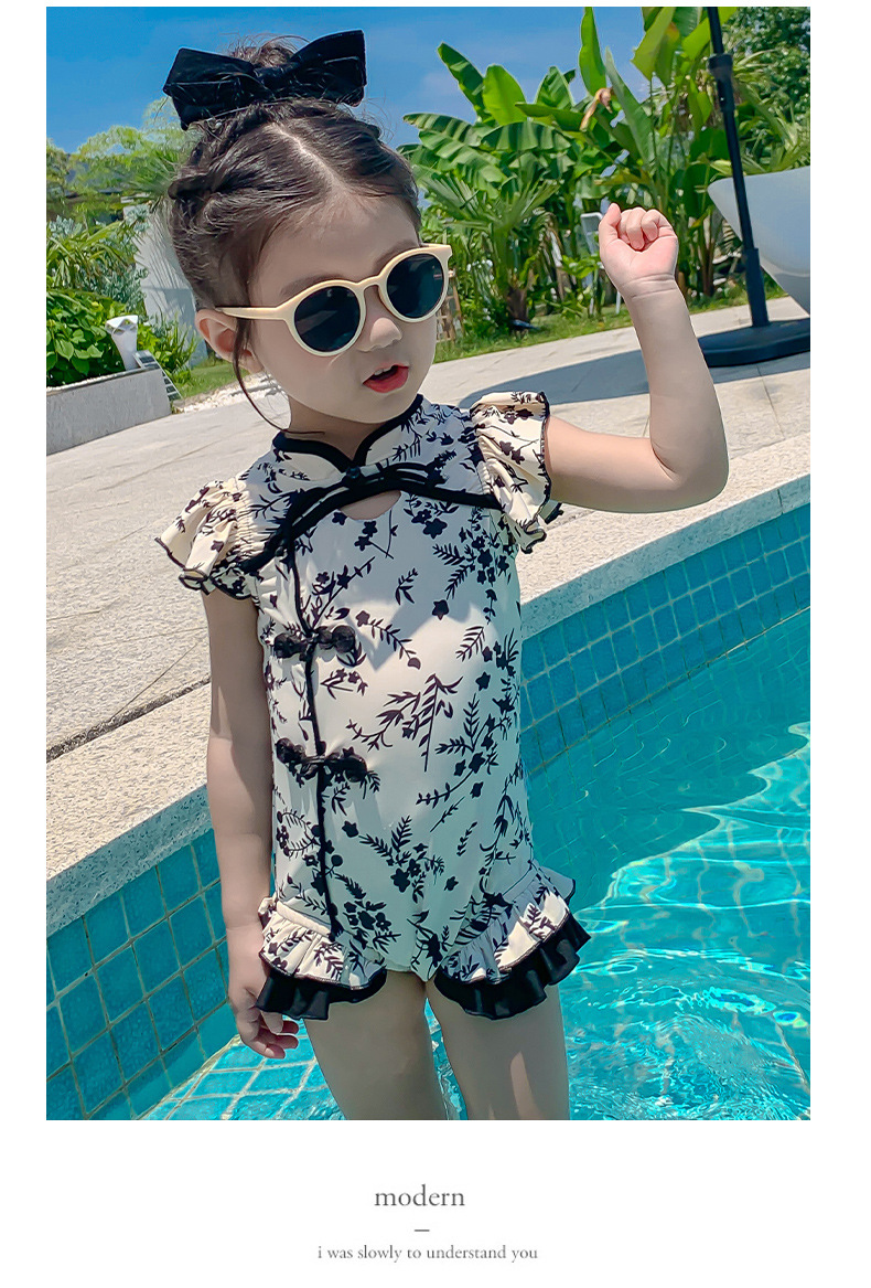 Купальник для девочек лето 2024 новый стиль baby baby китайский стиль принт купальник красная девушка цельный детский купальник