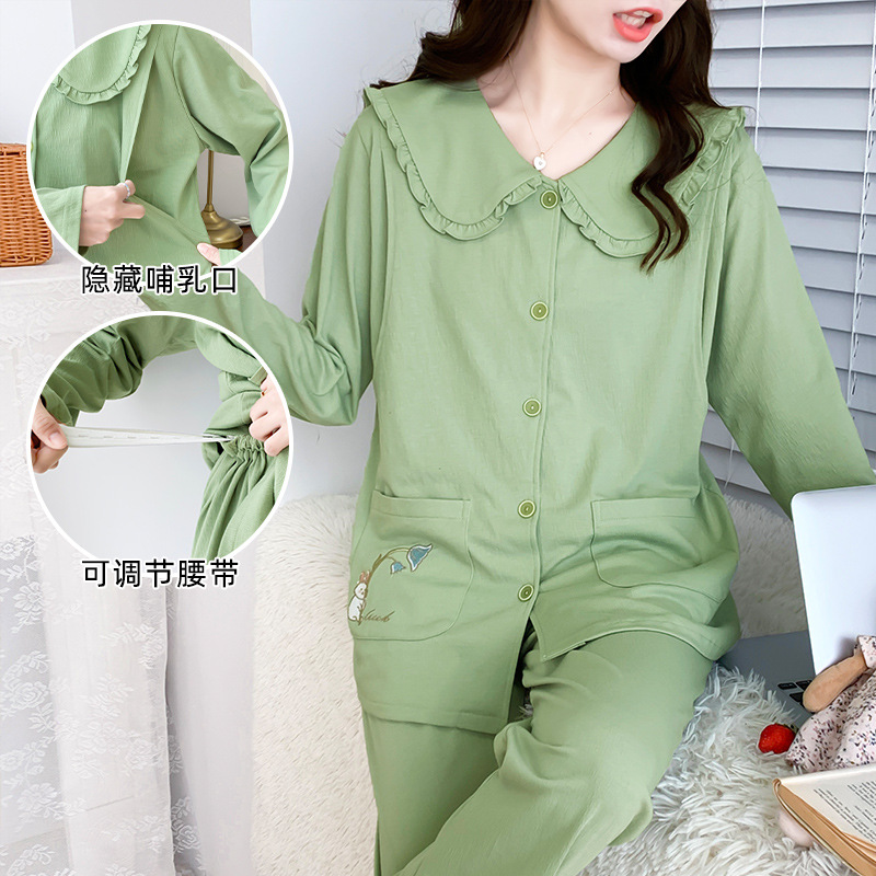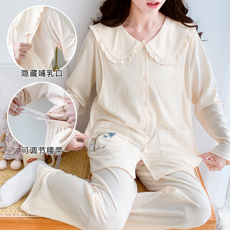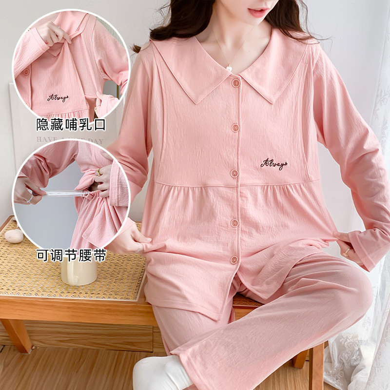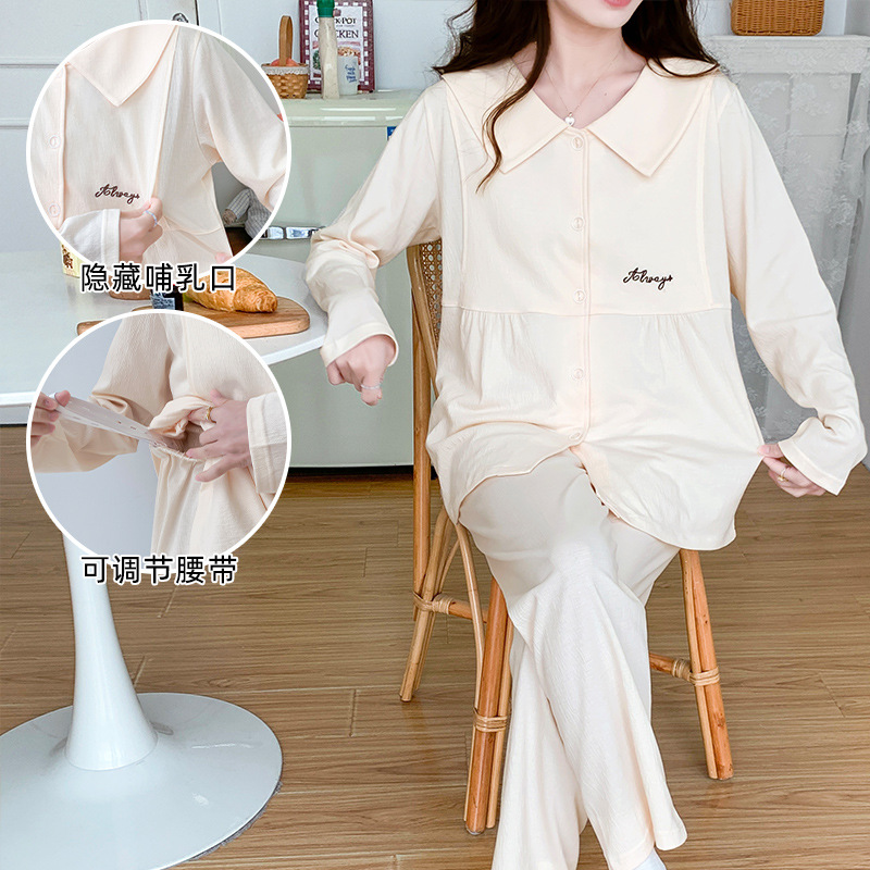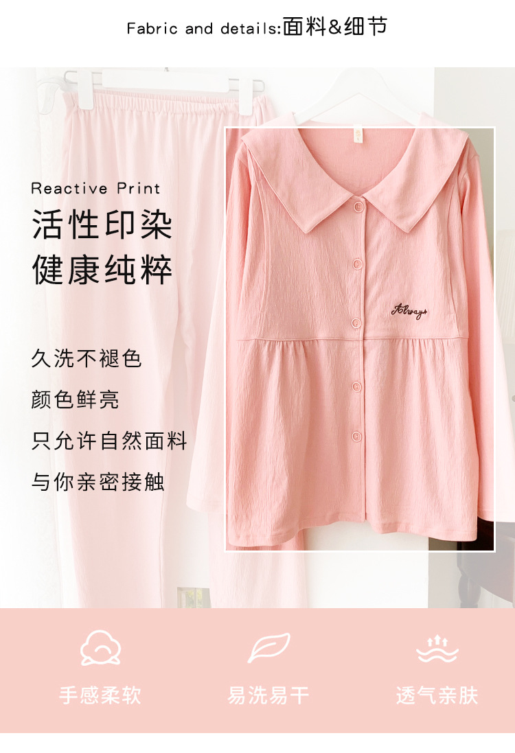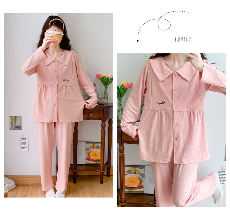 Хлопчатобумажный креп новый костюм для родов свободный креп хлопок кормящая пижама женский весна и осень послеродовое кормление костюм для беременных