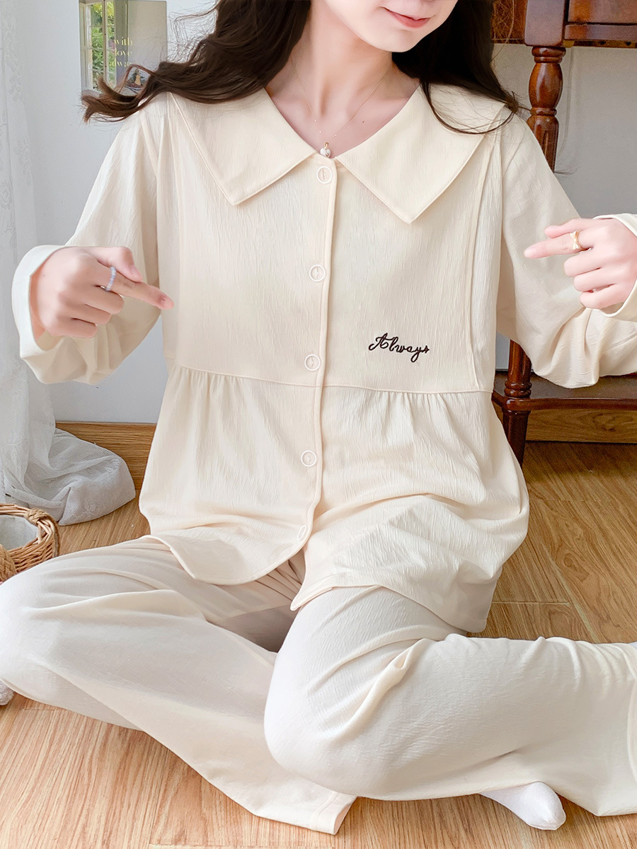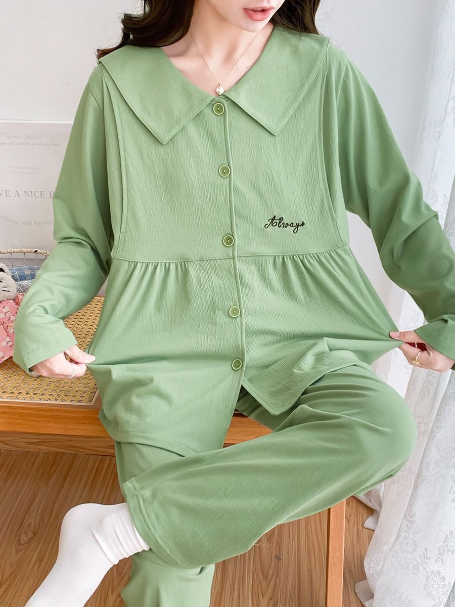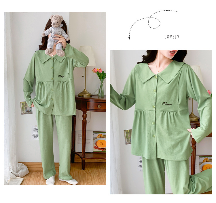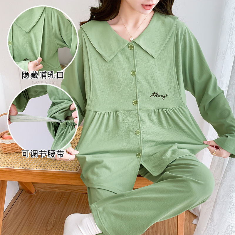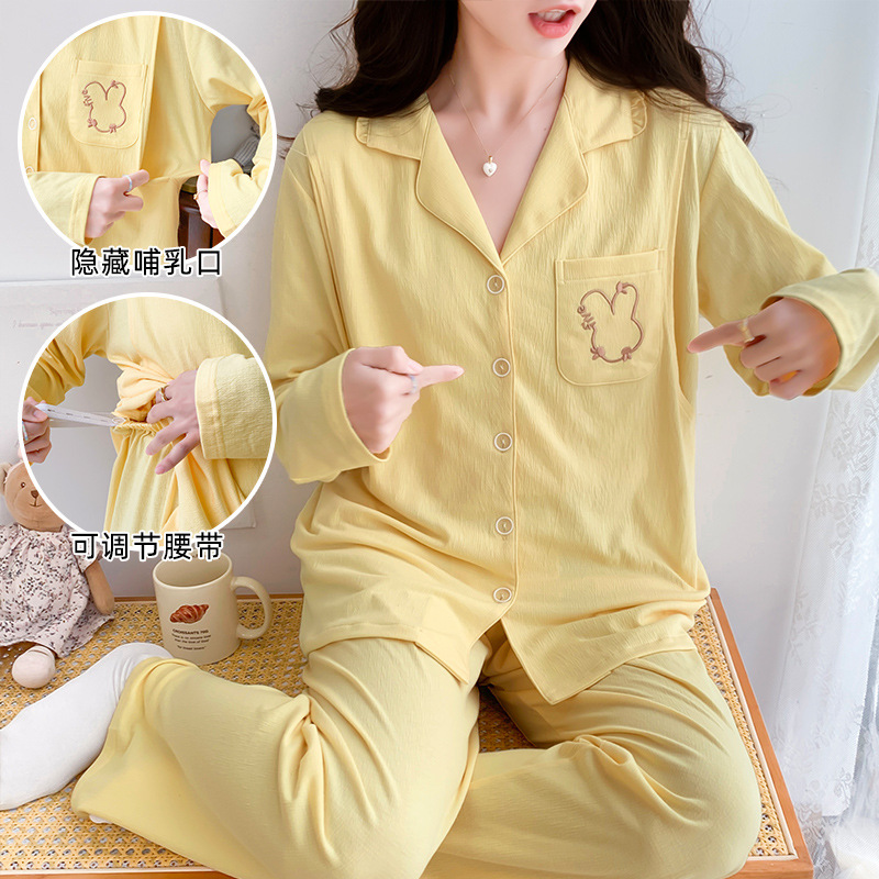 Хлопчатобумажный креп новый костюм для родов свободный креп хлопок кормящая пижама женский весна и осень послеродовое кормление костюм для беременных