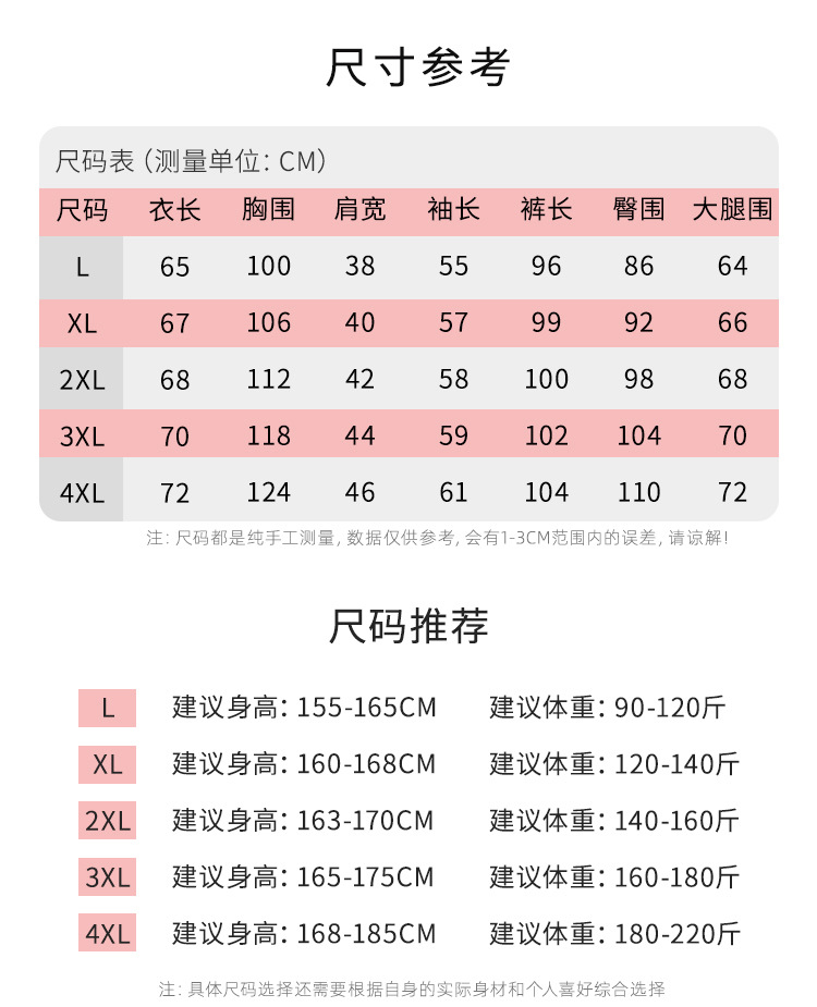 L (рекомендуется ниже 120 кг); XL (рекомендуется 120-140 кг); XXL (рекомендуется 140-160 кг); XXXL (рекомендуется 160-185 кг); 4XL (рекомендуется 185-220 кг)