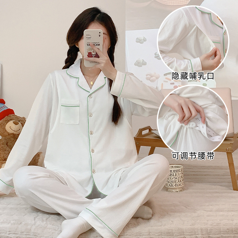 Креп Хлопок Новый костюм для родов Свободный сплошной цвет Пижама для кормления Женская весна и лето Послеродовое кормление Одежда для беременных костюм