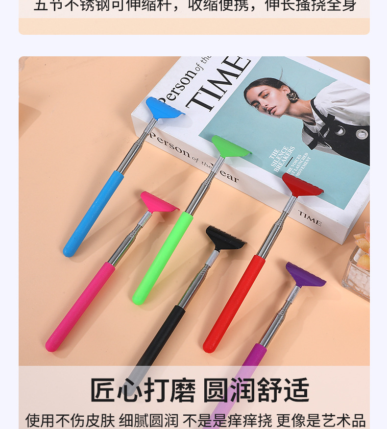Пятисекционный маленький семи зубчатый телескопический массажер для щекотки из нержавеющей стали, не нужно просить помощи, массажер для щекотки старика
