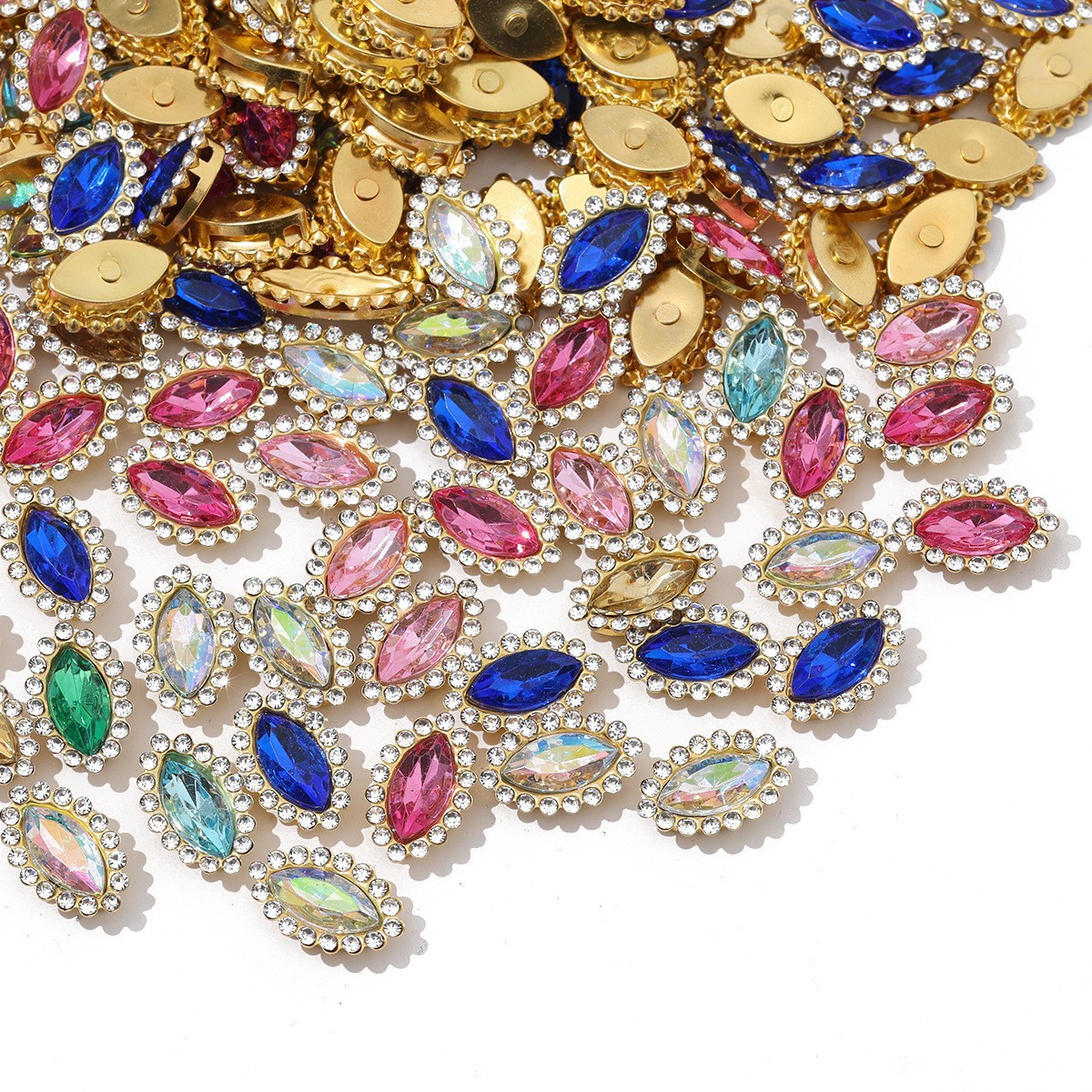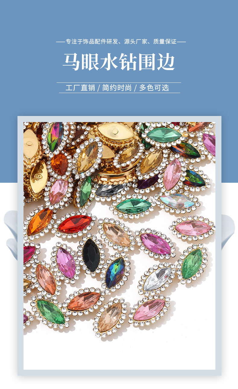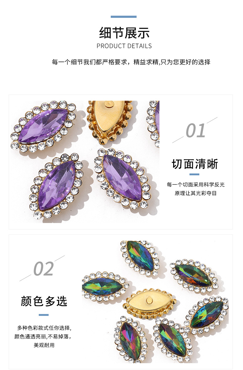 Акриловая пряжка с кристаллами в форме конского глаза, украшенная стразами, для ручного шитья, оптом, аксессуар для одежды, DIY.
