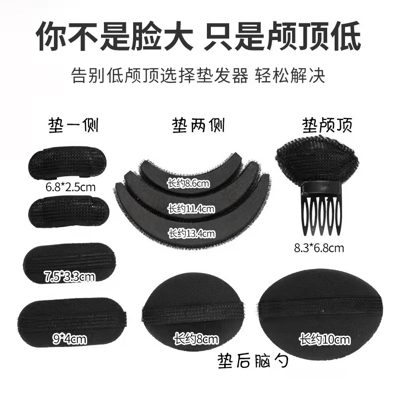 1#2 черных дышащих подушечки; 2#2 коричневых дышащих подушечки; 3#1 коричневая расческа на воздушной подушке; 4#1 черная расческа-вставка; 5#Тип губки: 1 большой размер + 1 маленький размер.; 6#Коврики в форме полумесяца, 3 большие, средние и маленькие.; 7#1 большая пушистая подушечка + 1 маленький размер.