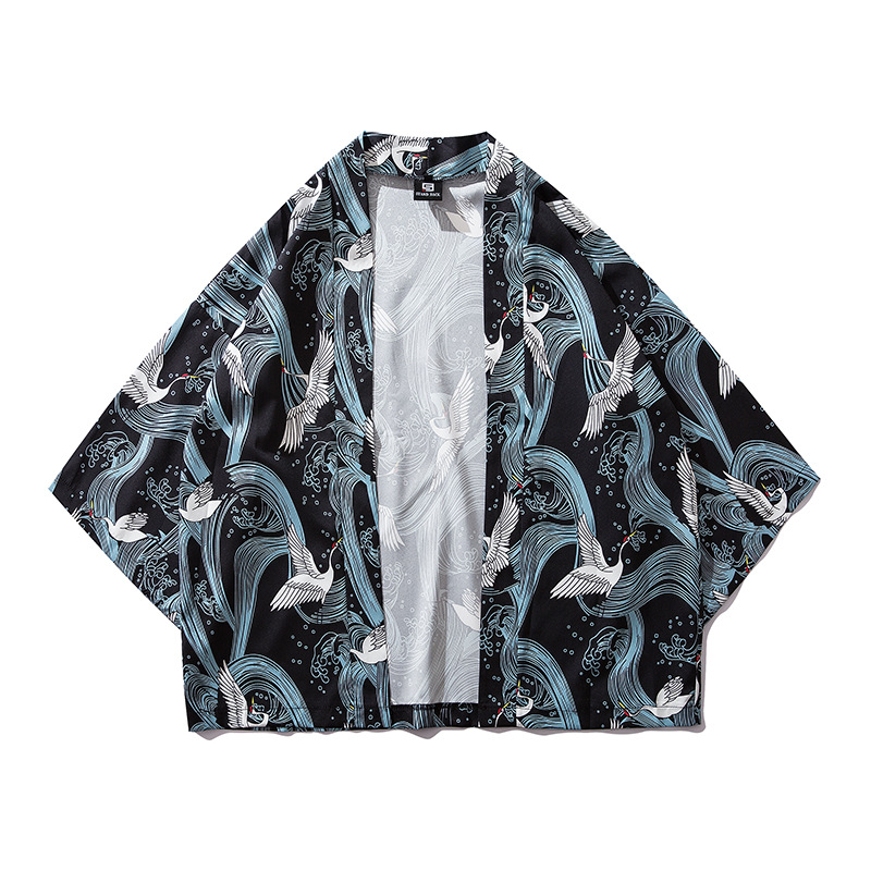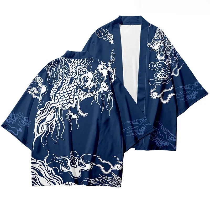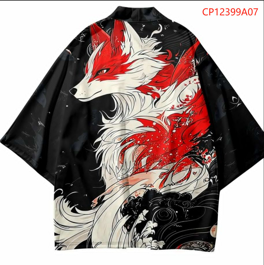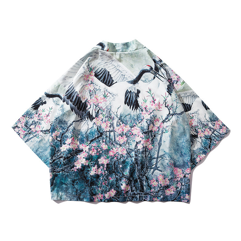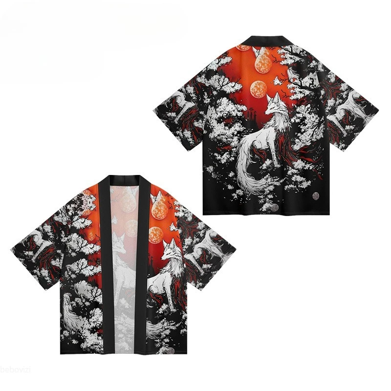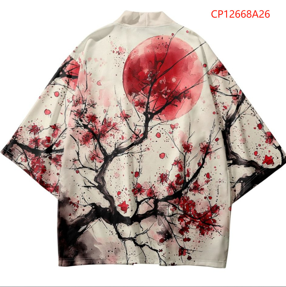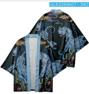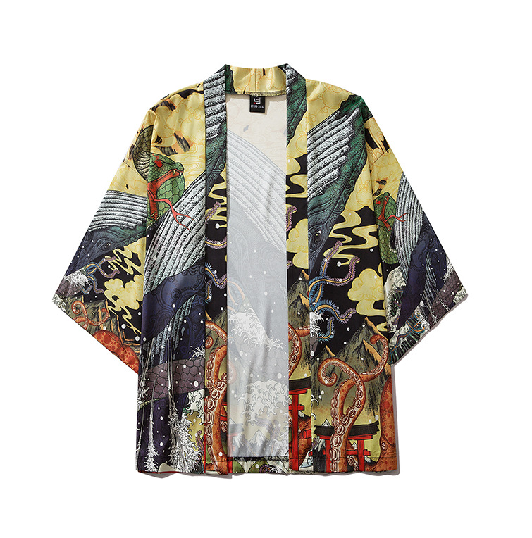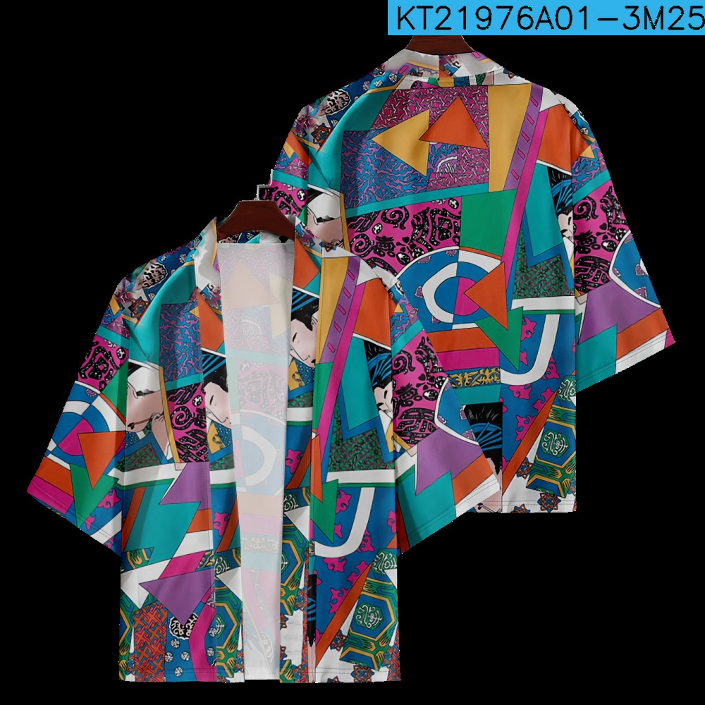 2023 Летнее кимоно Трансграничная иллюстрация 3D Печатная рубашка из семи точек