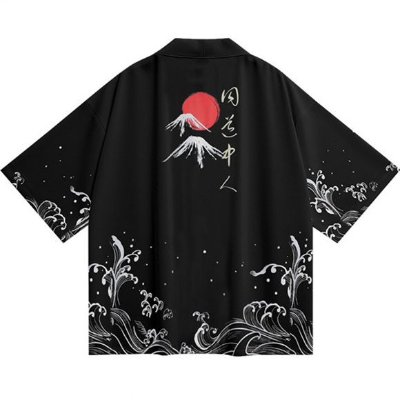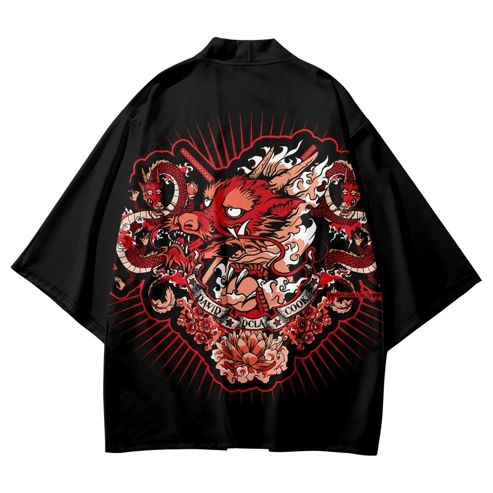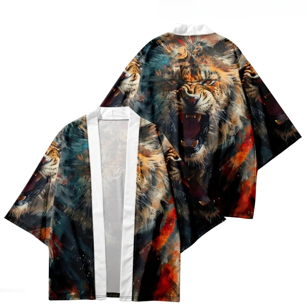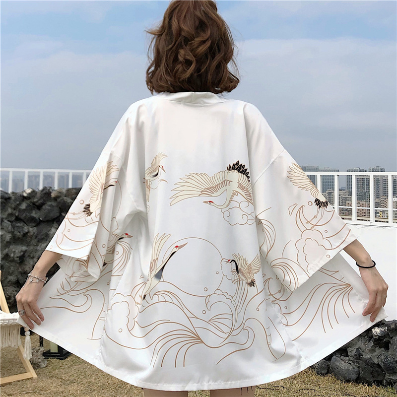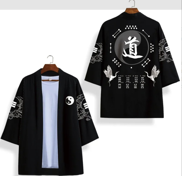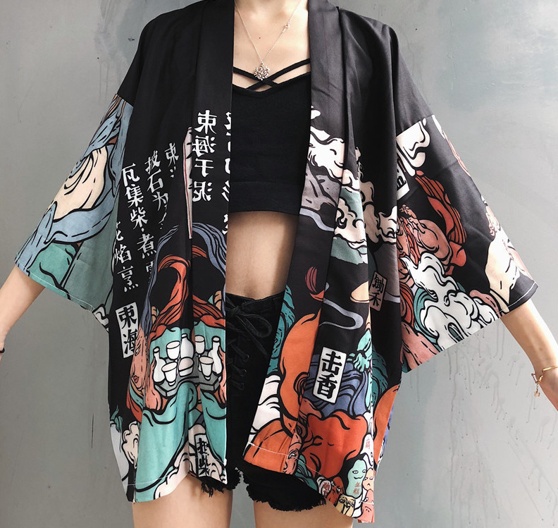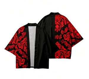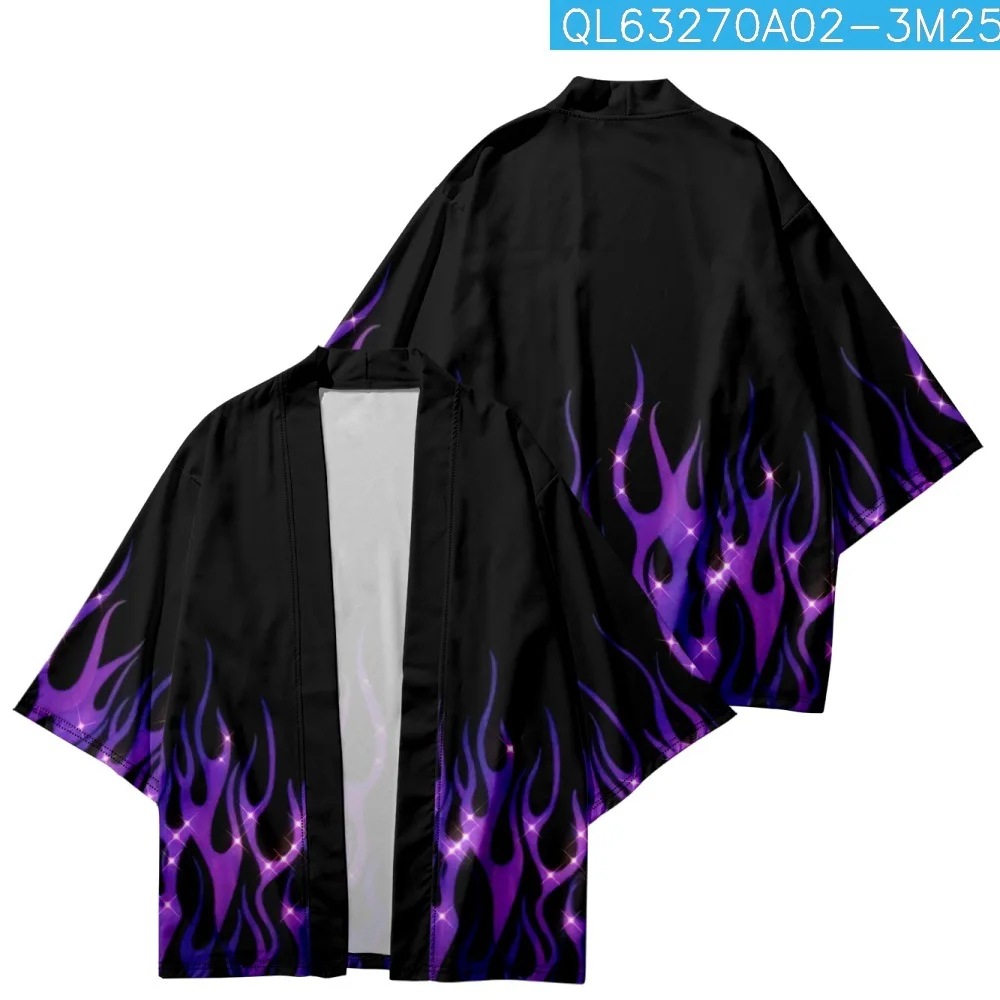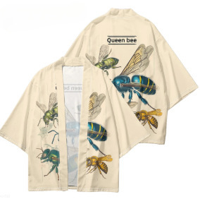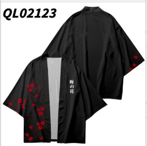 2023 Летнее кимоно Трансграничная иллюстрация 3D Печатная рубашка из семи точек