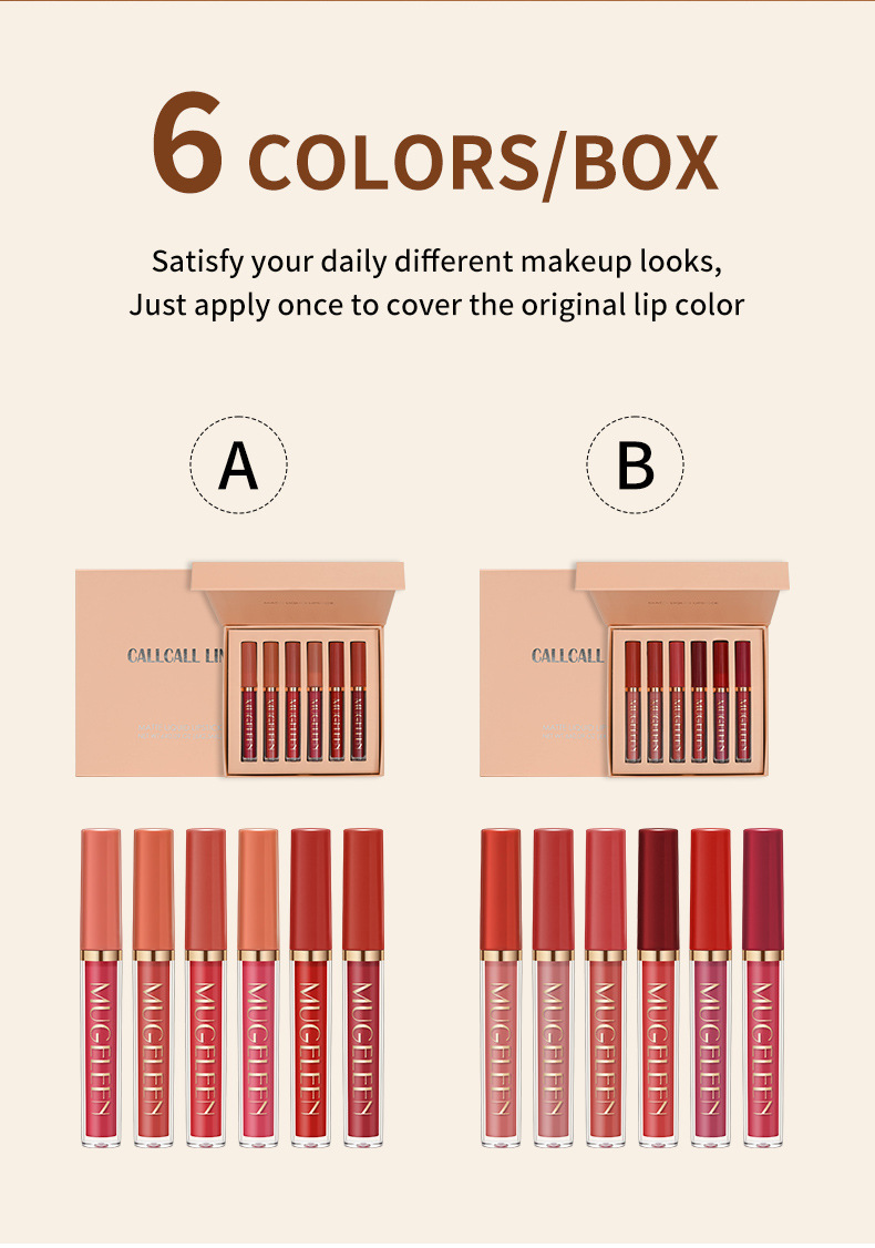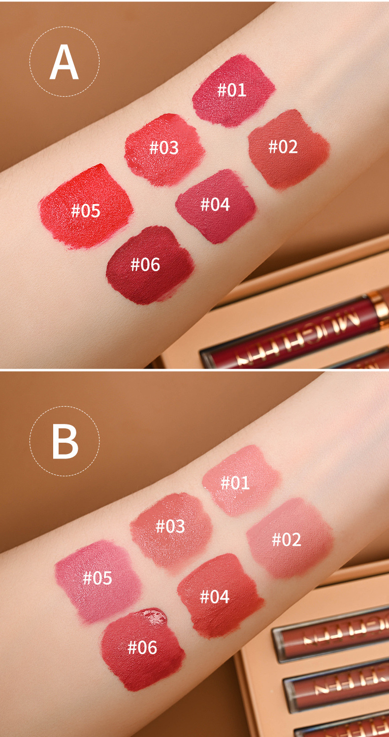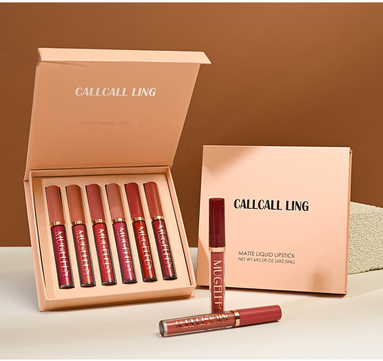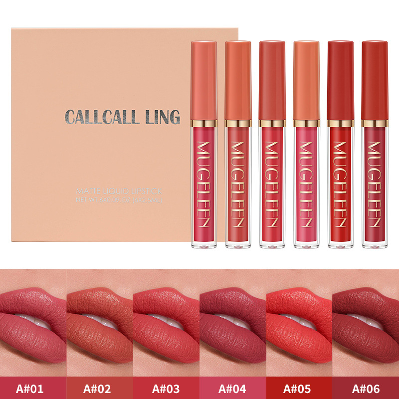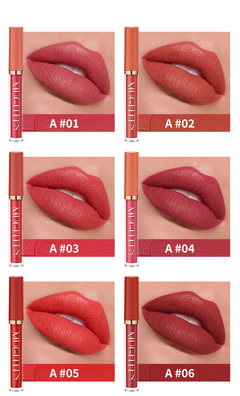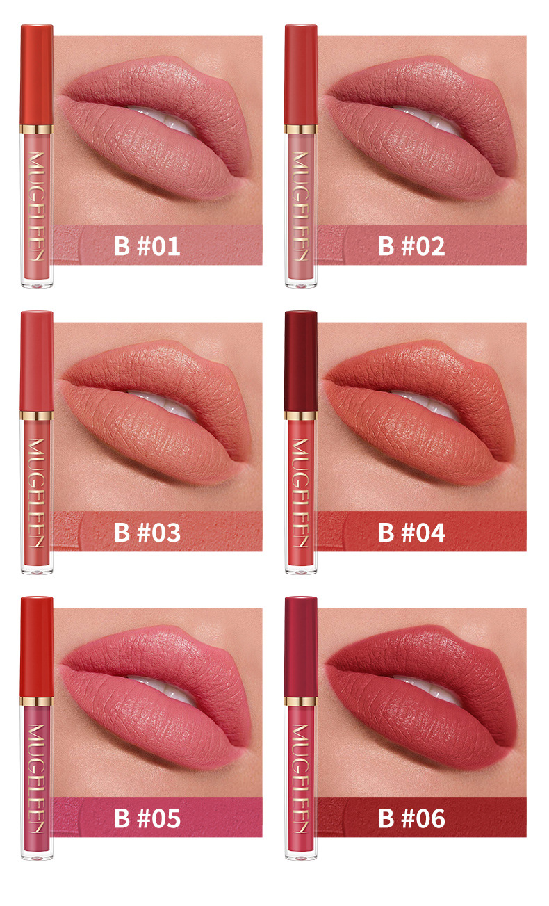 Набор жидких матовых помад MUGE LEEN, 6 штук, с эффектом бархата, нелипкий, для макияжа в европейском и американском стиле