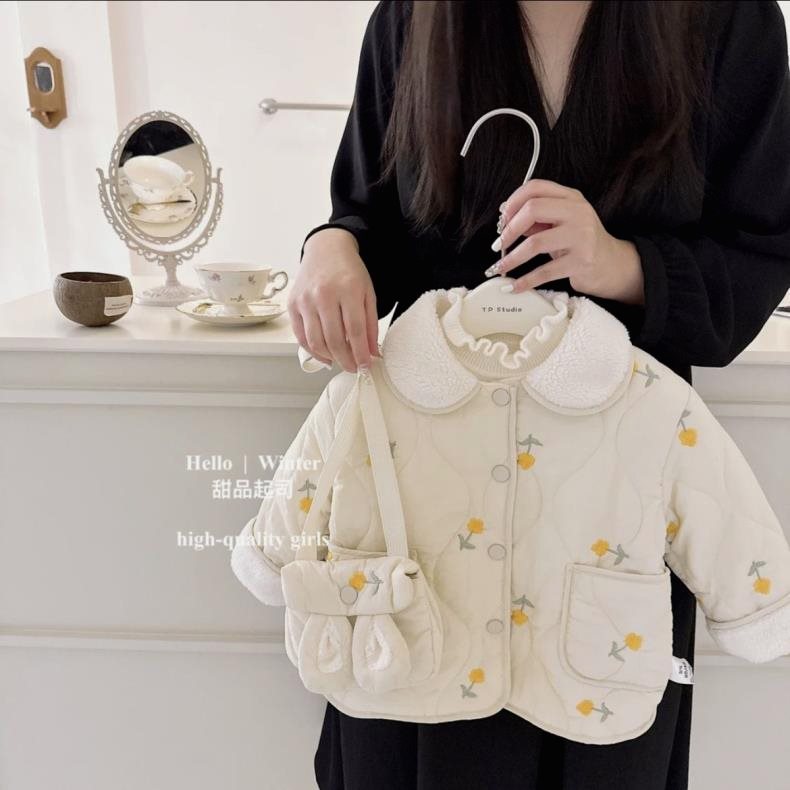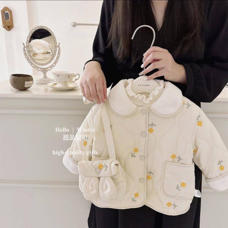 Хлопчатобумажная куртка для девочек зимняя одежда плюс бархат и хлопок для детей