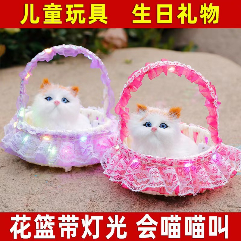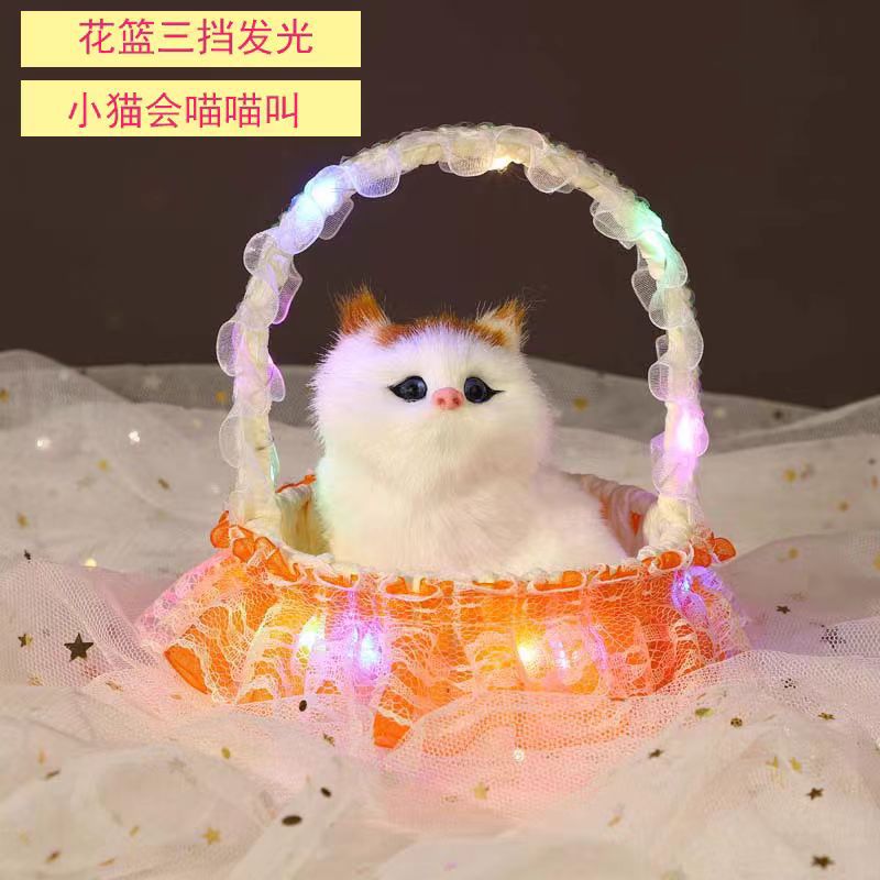 Светящаяся корзина с цветами и котом, детская игрушка-корзина, реалистичный мяукающий кот, кукла-кошка, модель-украшение, поделка