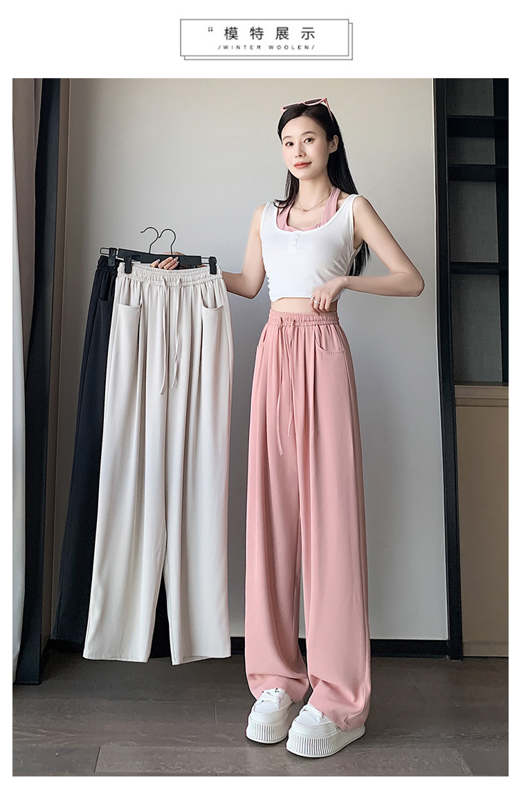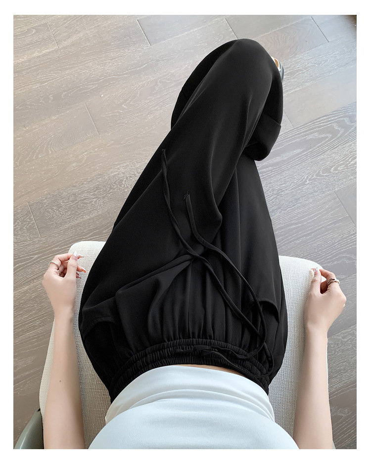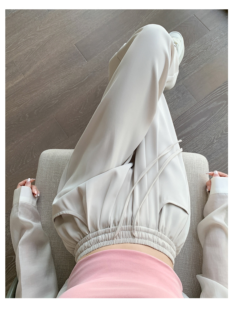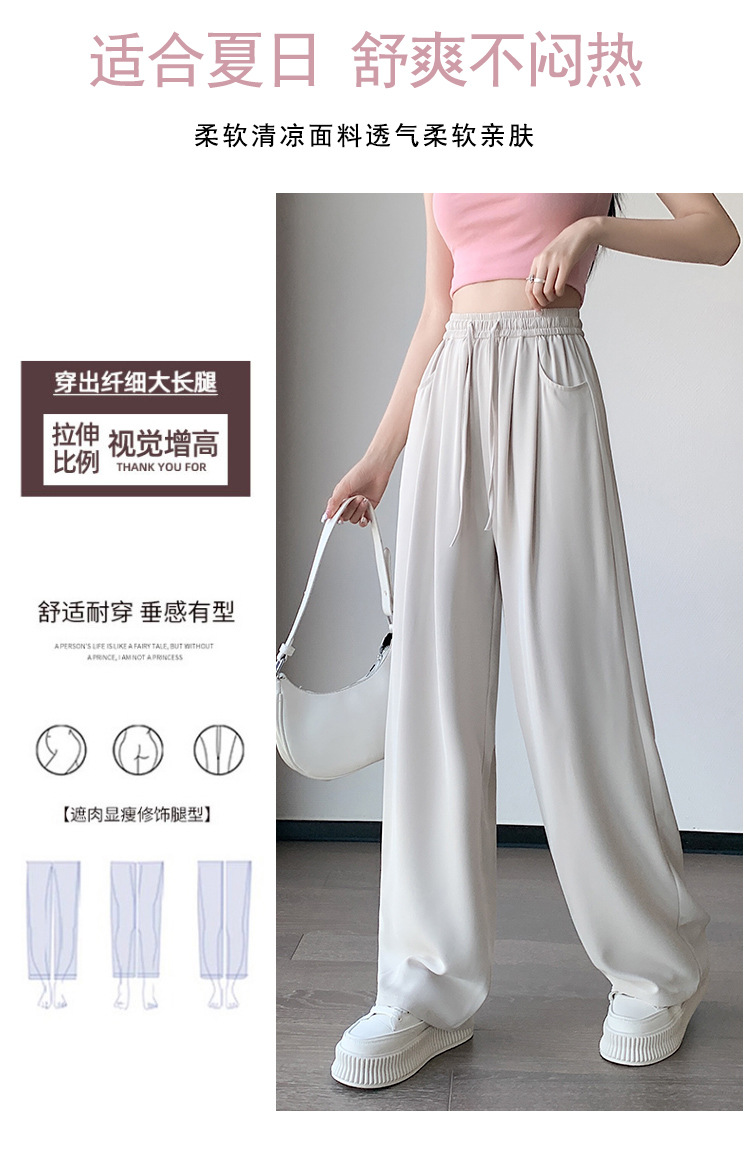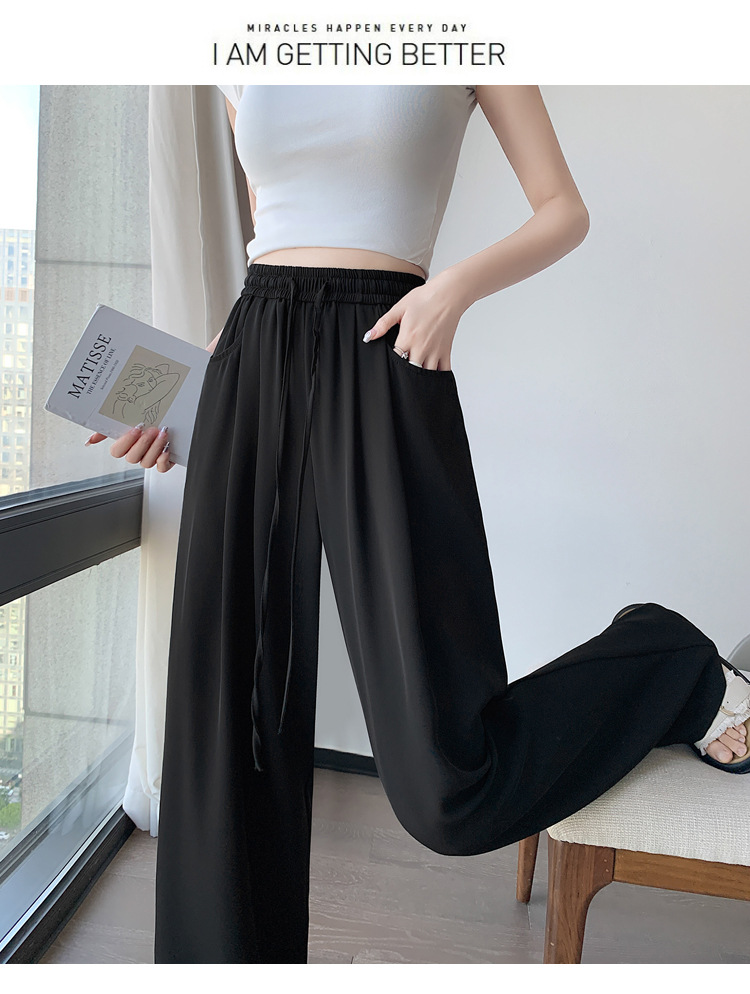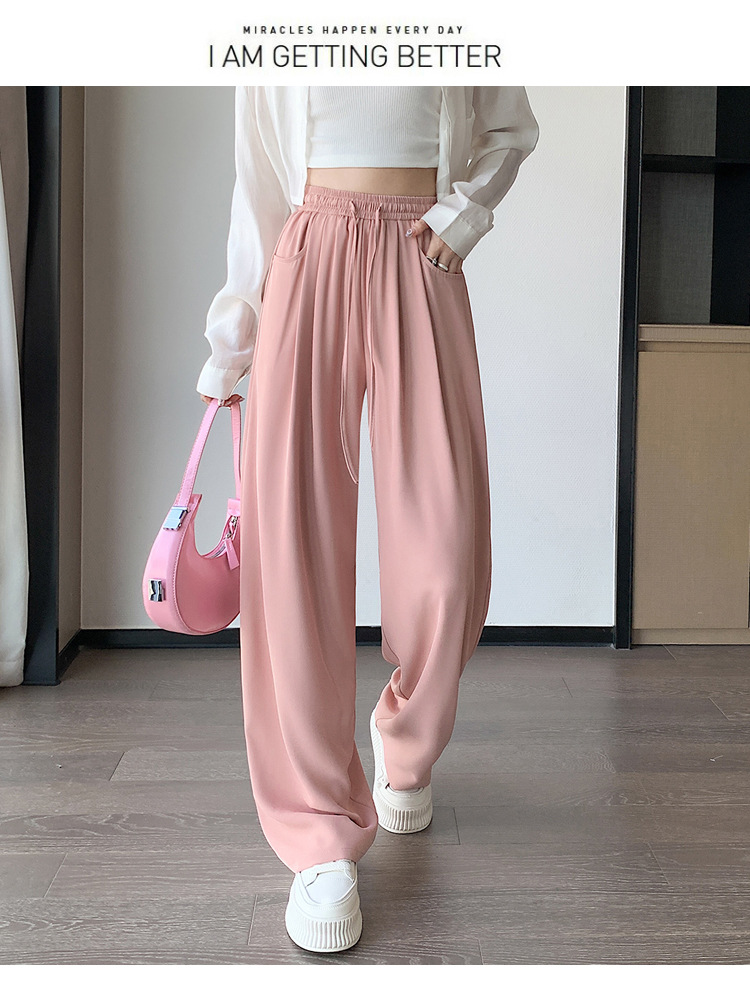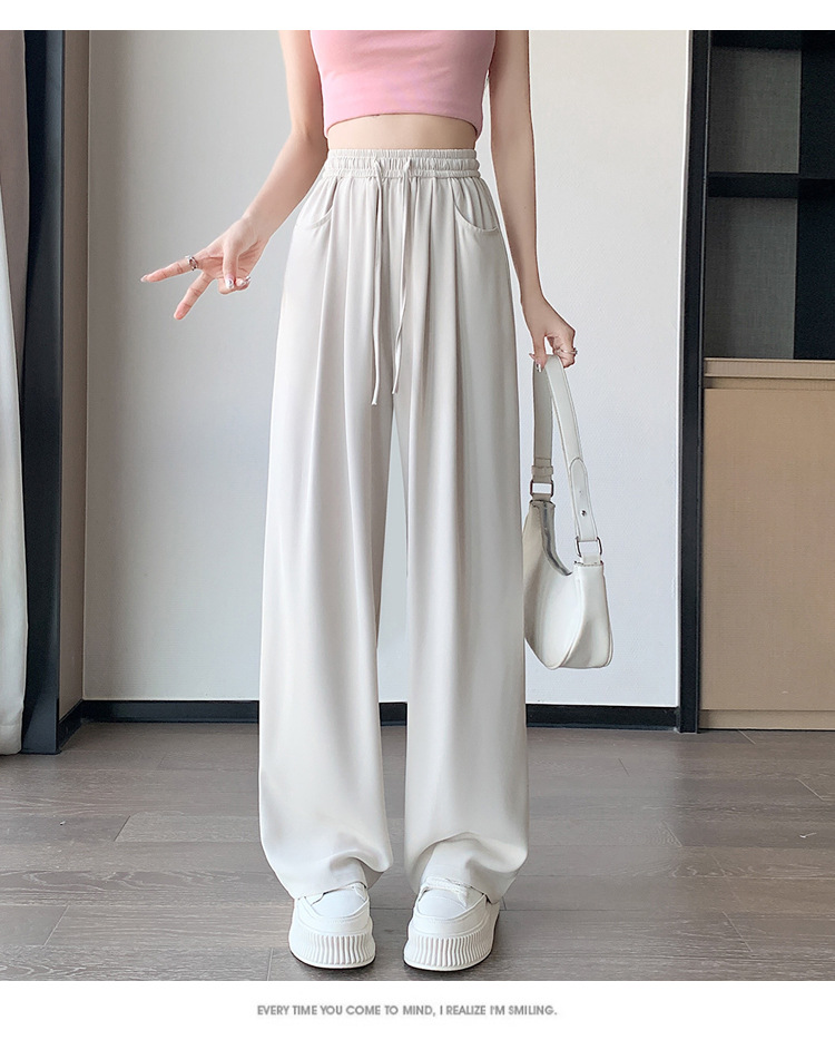 Летний ледяной шелк тонкие женские штаны с высокой талией