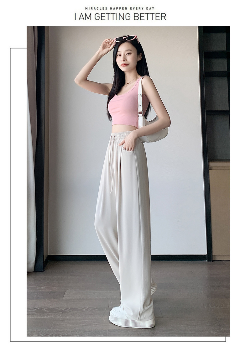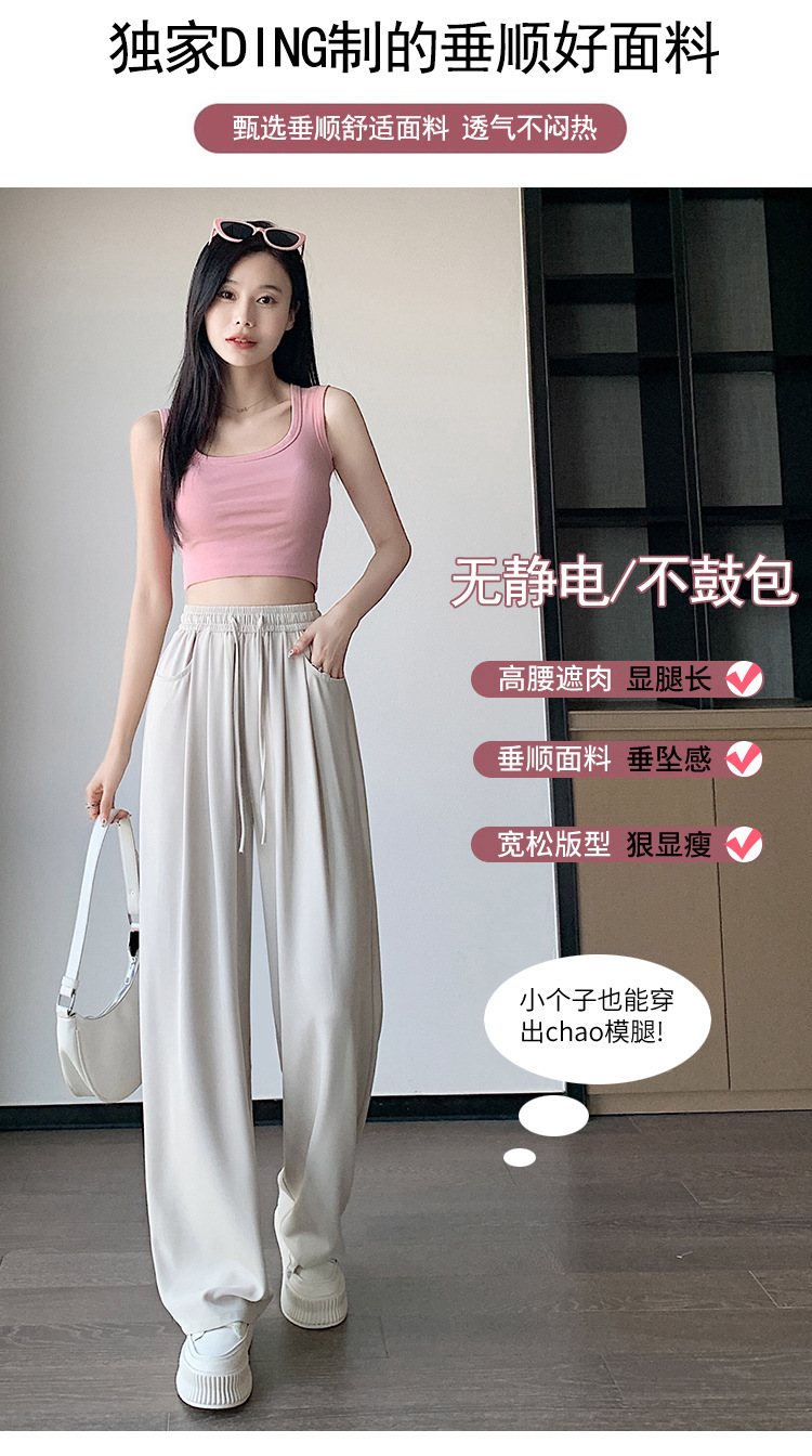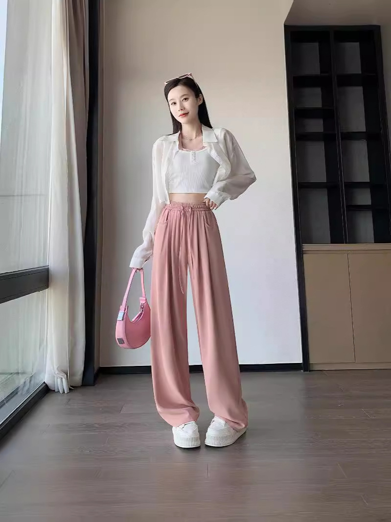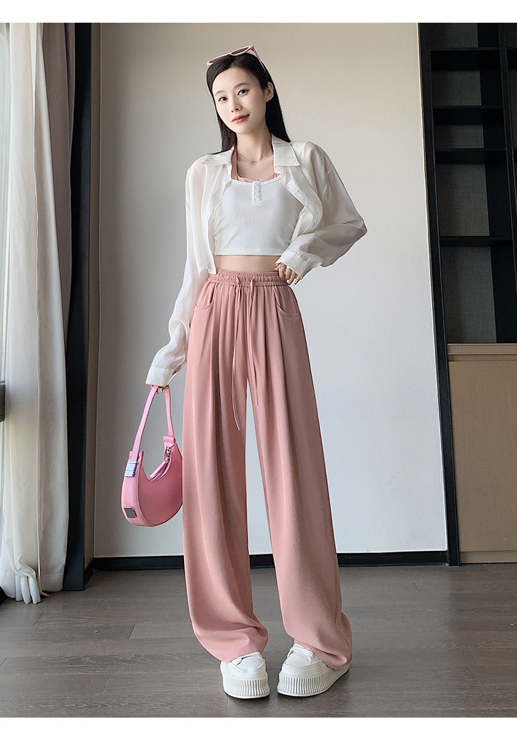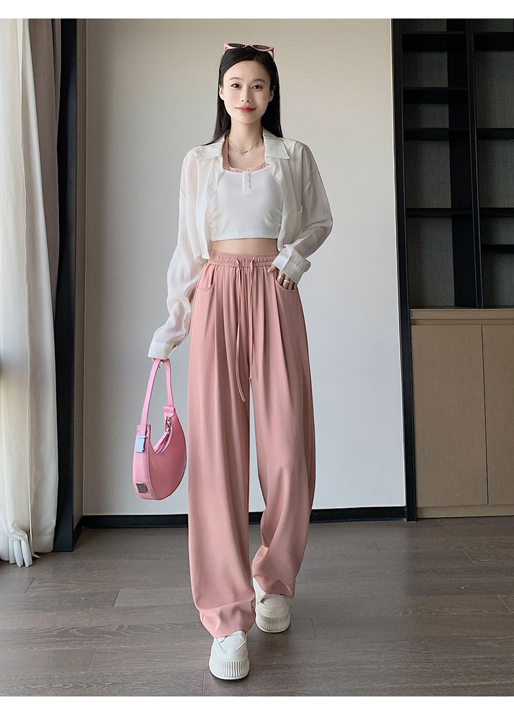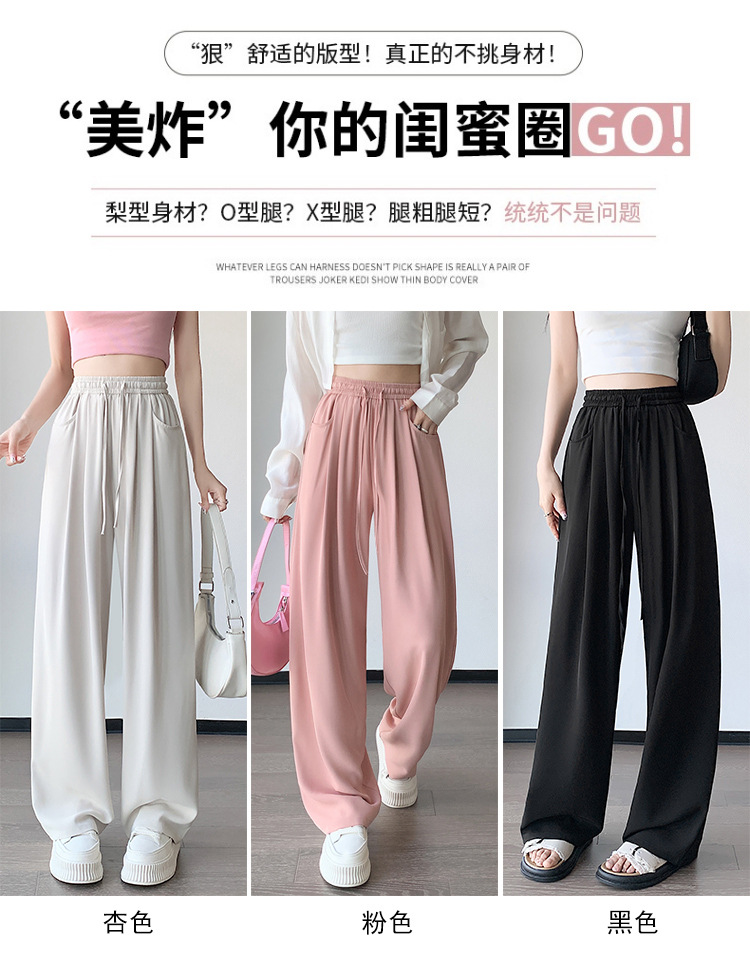Летний ледяной шелк тонкие женские штаны с высокой талией