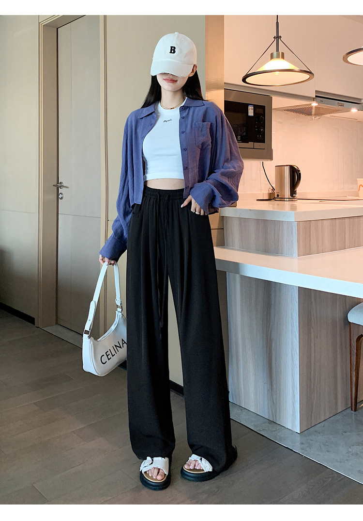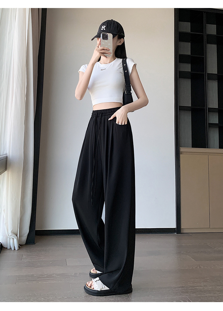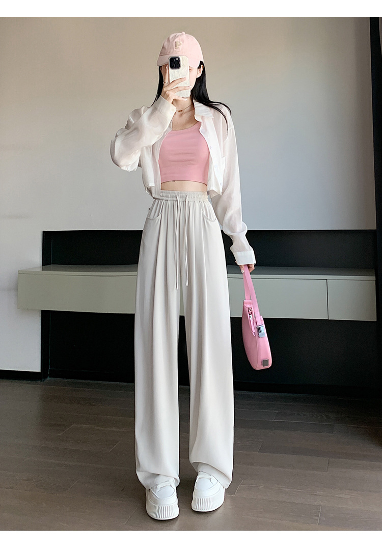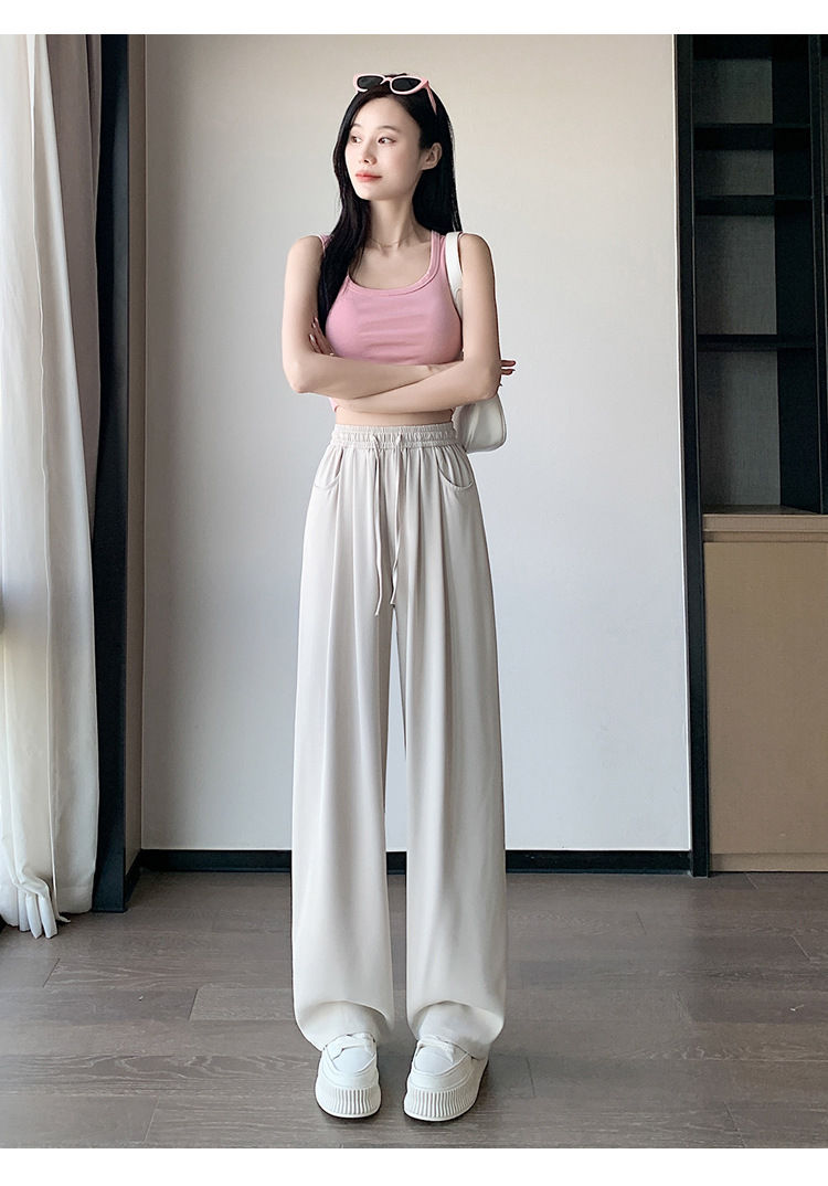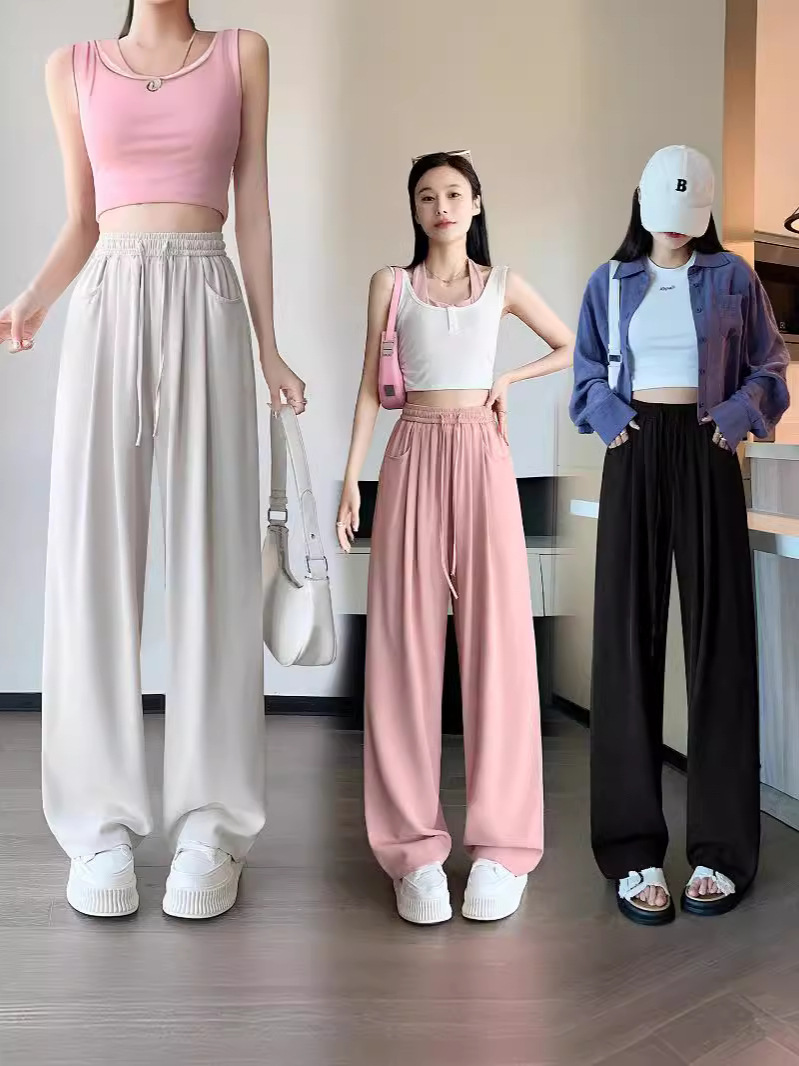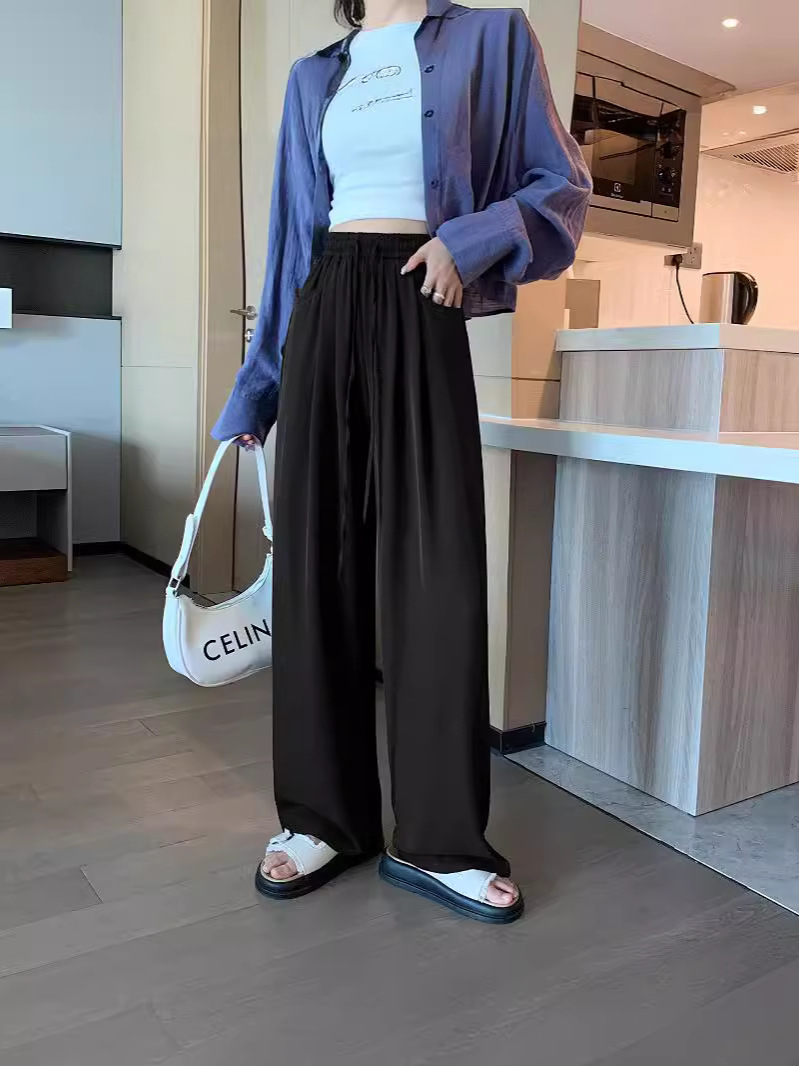 Летний ледяной шелк тонкие женские штаны с высокой талией