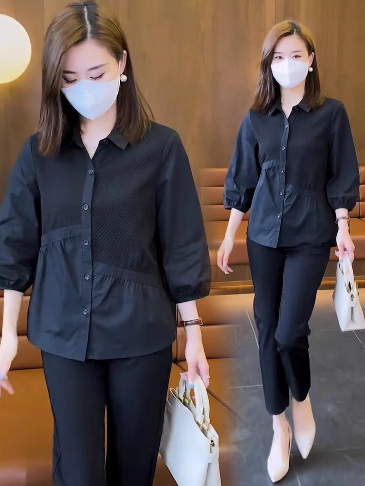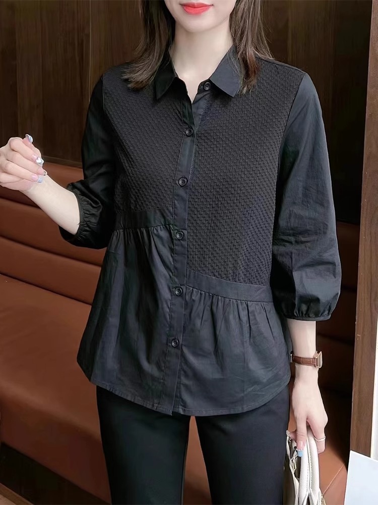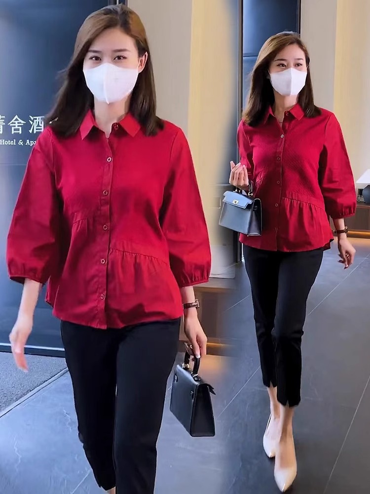 Взрывная рубашка женская мода, покрывающий живот, рубашка с семью рукавами 2025 весенняя рубашка дизайн