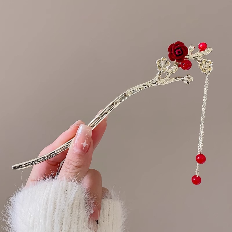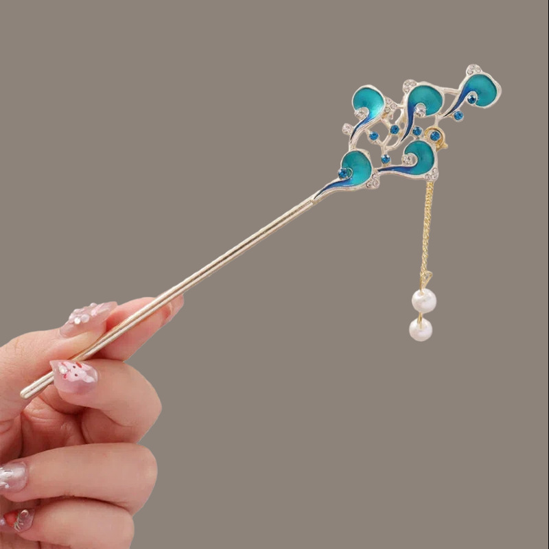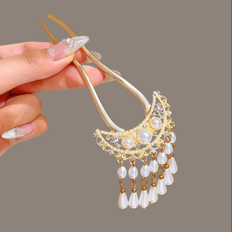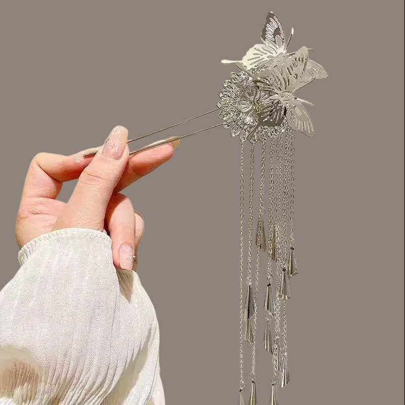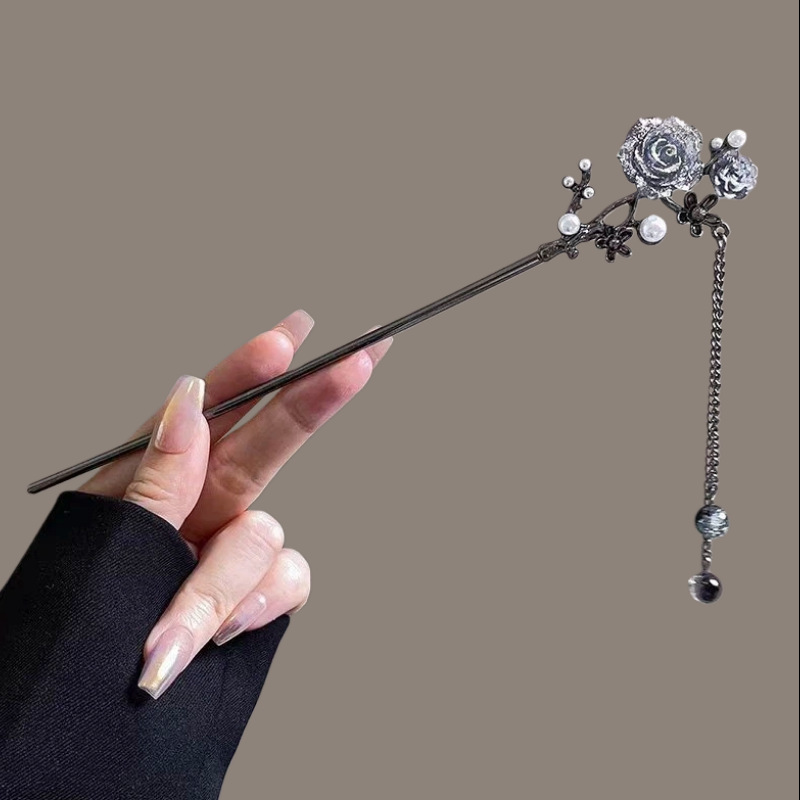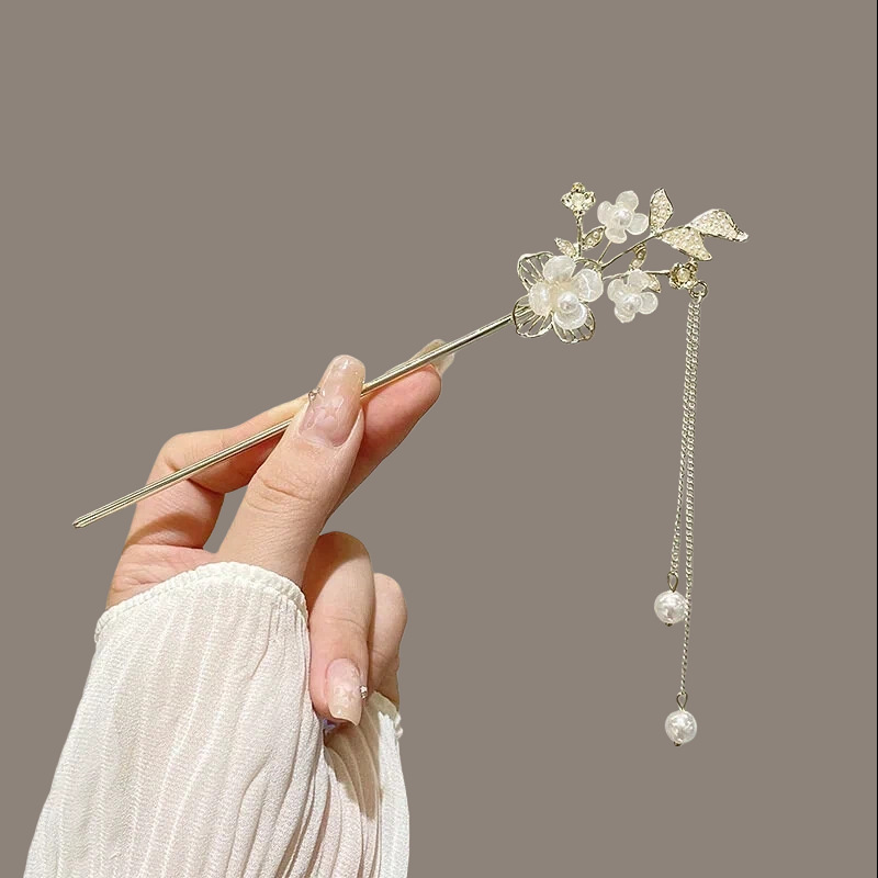 Изысканные заколки в античном стиле оптом, заколки с цветком магнолии, аксессуары для волос с кисточками, элитные U-образные заколки.