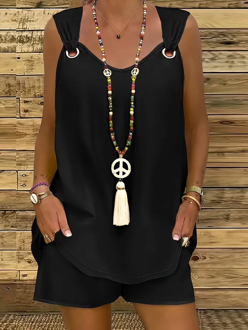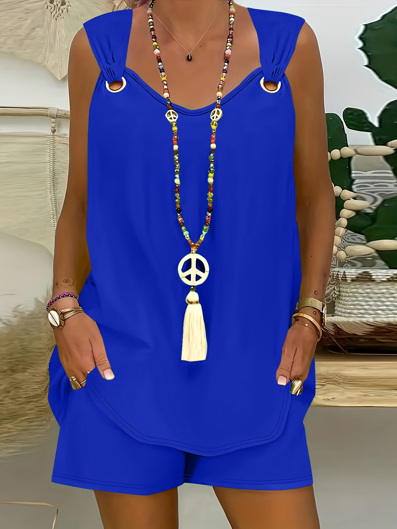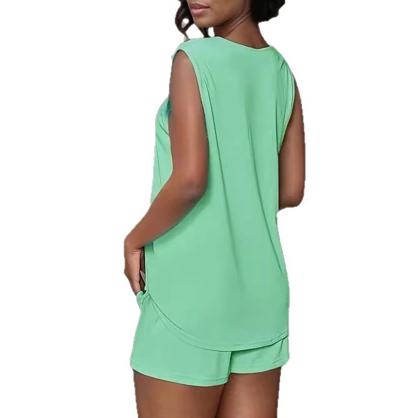 Европейский и американский трансграничный новый Amazon ebay независимая станция с круглым вырезом сплошной цвет два комплекта без рукавов шорты