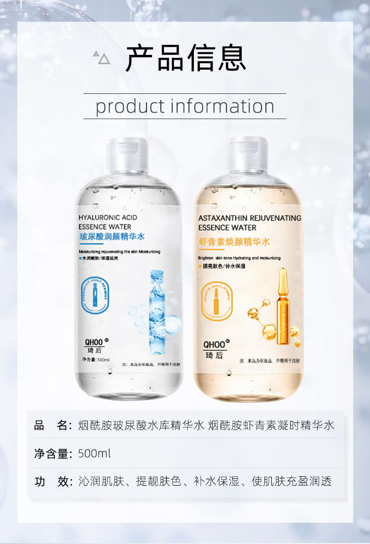 Подлинная гиалуроновая кислота астаксантин Бутылка эссента Тонер увлажняющий увлажняющий Сокращение пор для контроля масла Женская большая бутылка