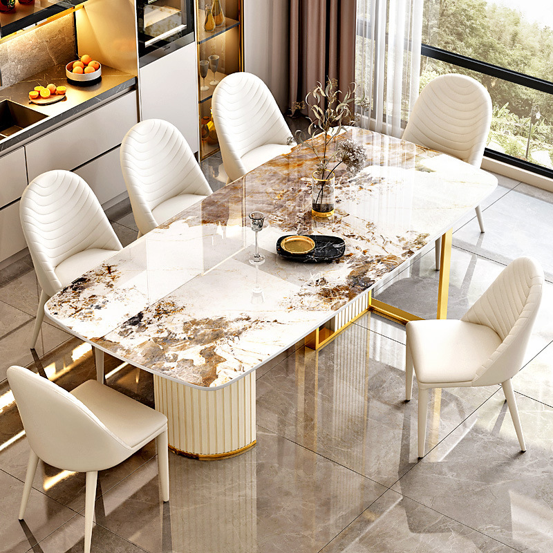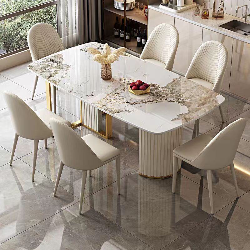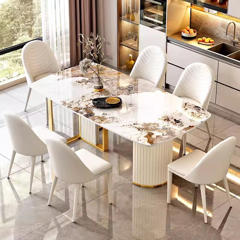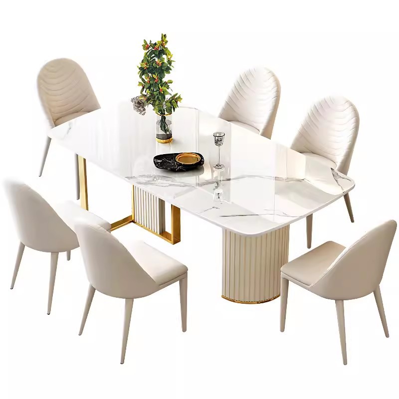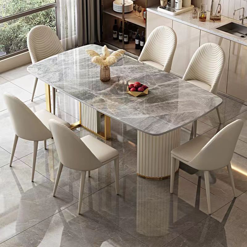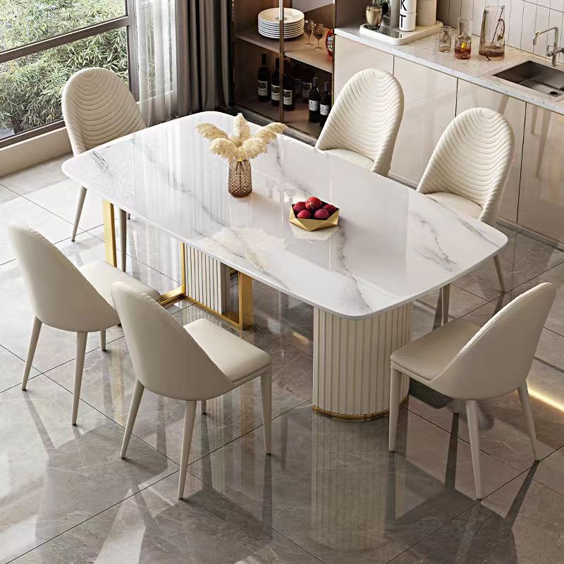 Комбинация обеденных столов и стульев из светлой роскоши белая домашняя небольшая квартира Современная минималистская гостиная прямоугольный стол Xifang обеденный стол