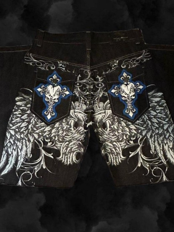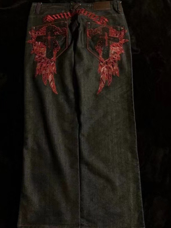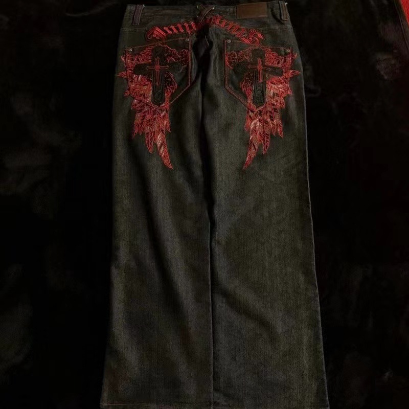 Трансграничные фабрики прямых продаж американский ретро вышивка прилив бренда хип-хоп уличные широкие ноги с высокой талией джинсы повседневные дикие