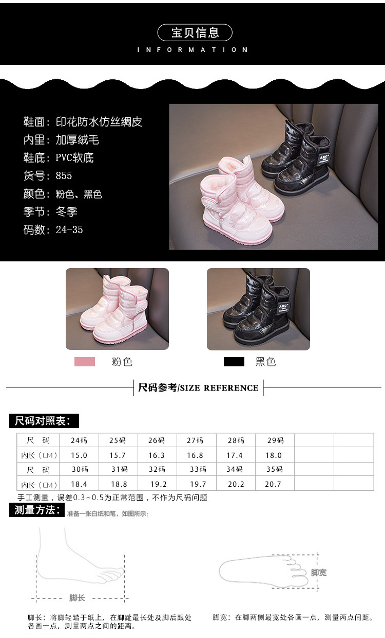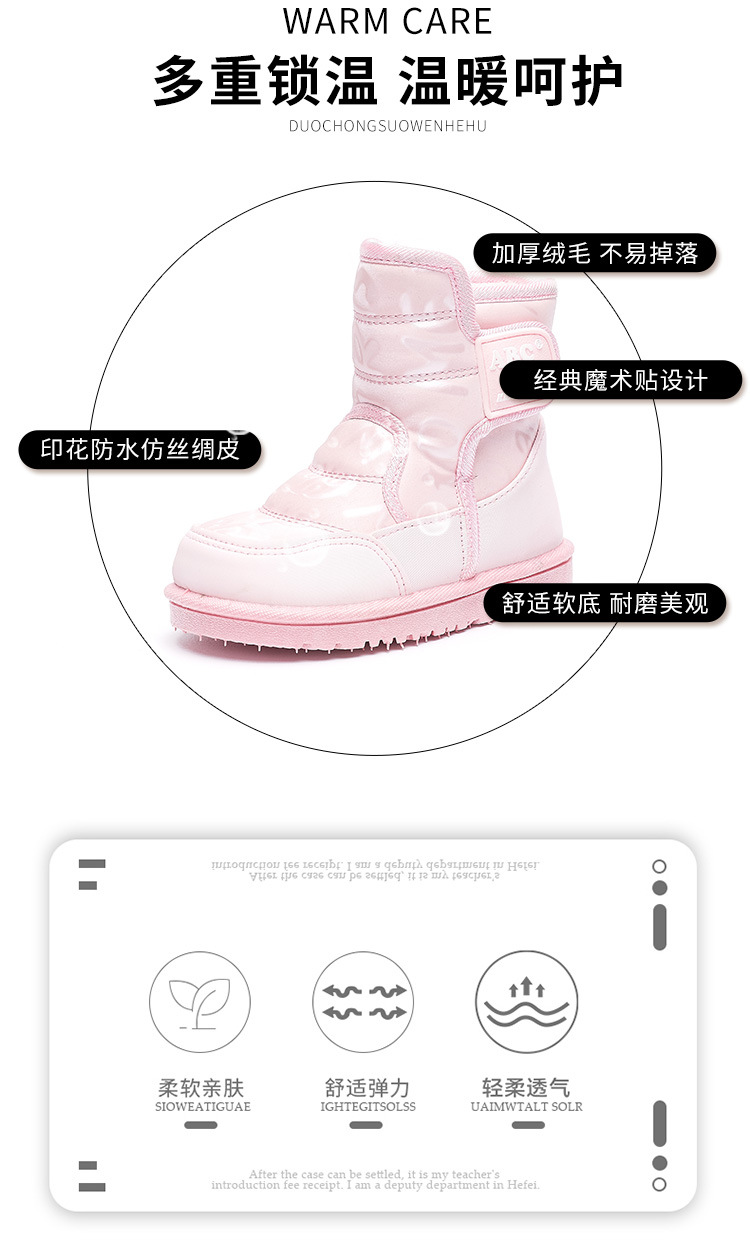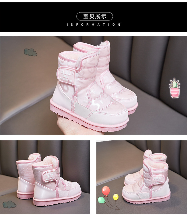 ABC BiII2025 новые зимние высокие зимние ботинки для девочек, нескользящая непромокаемая утолщенная теплая хлопковая обувь и ботинки на флисовой подкладке