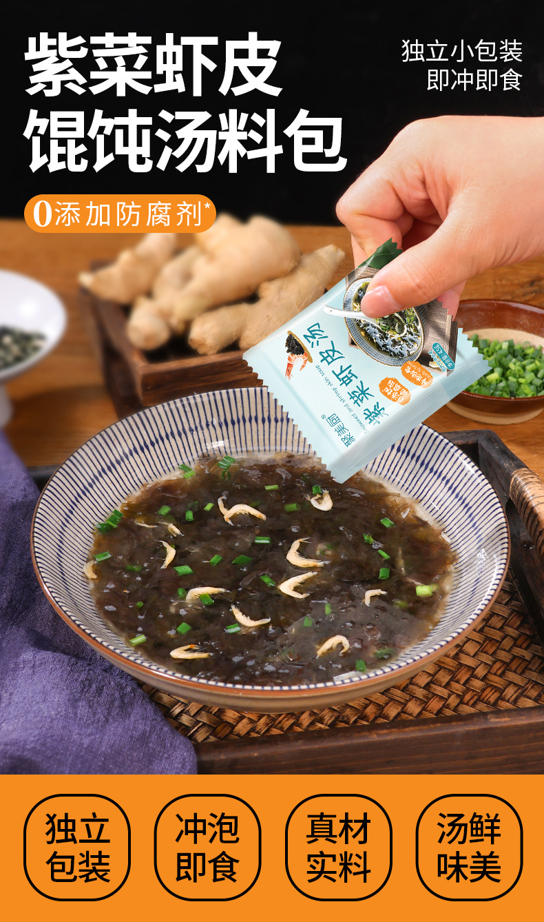 Оптовая продажа смеси для приготовления супа быстрого приготовления с вакаме и сушеными креветками, готовый пакетик для лапши быстрого приготовления, смесь для супа из водорослей без необходимости варки.