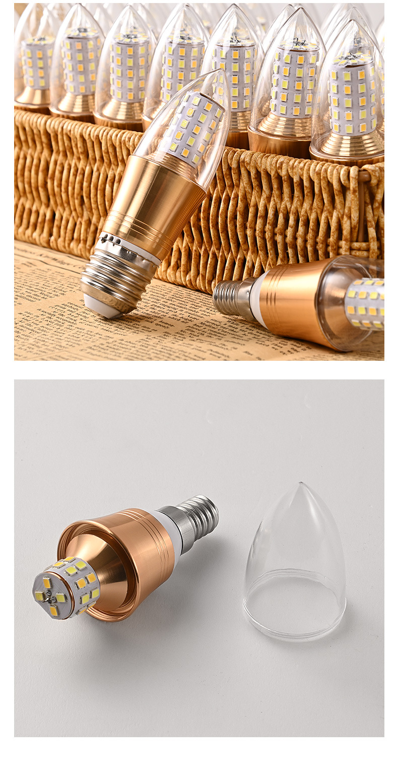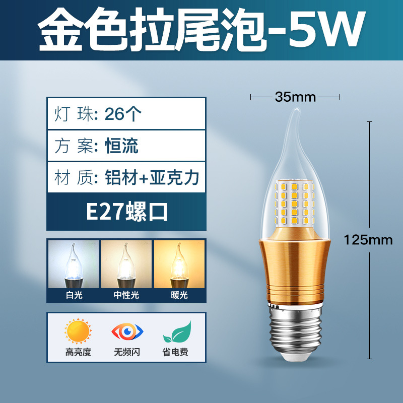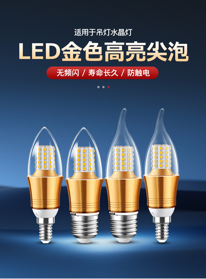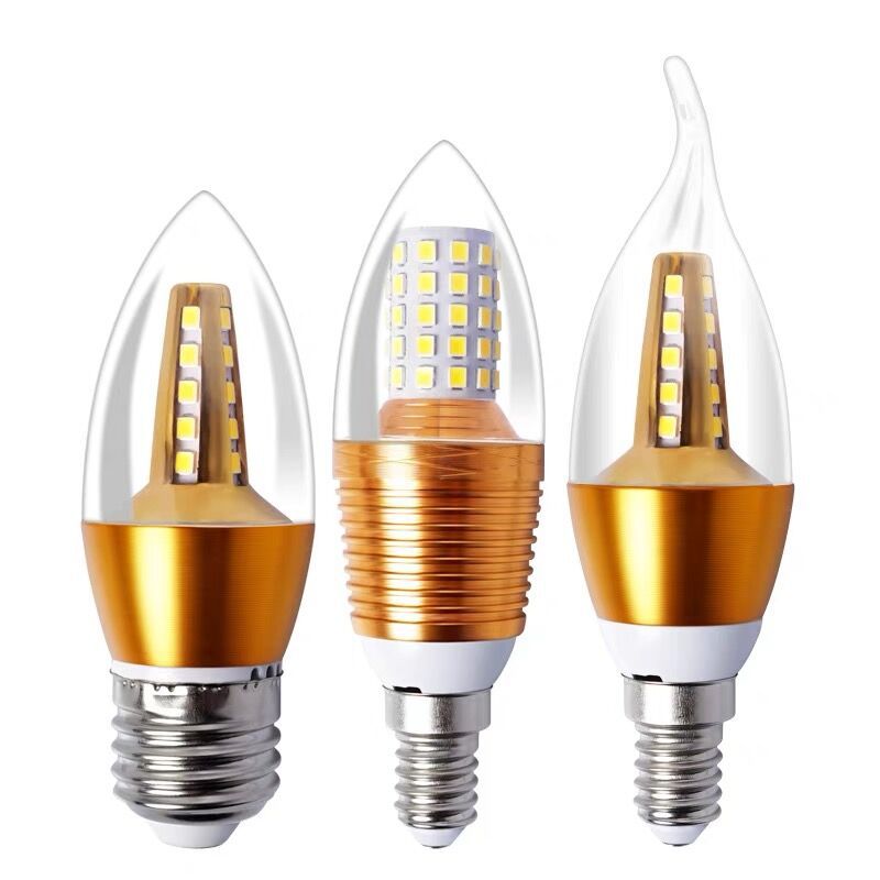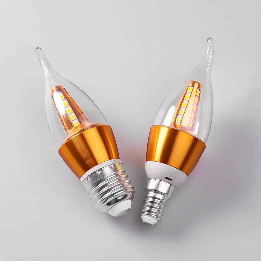 Светодиодная свеча лампа золотой остроконечный пузырьковый хвост E27E14