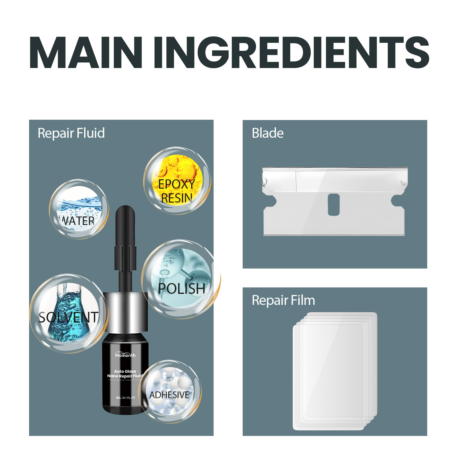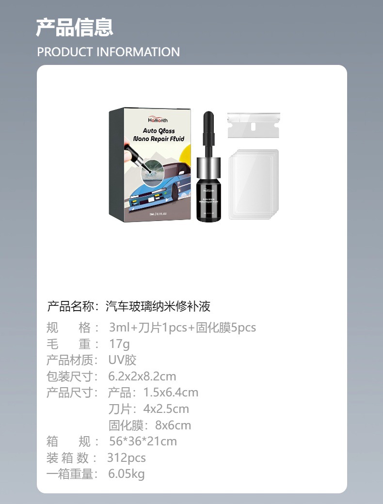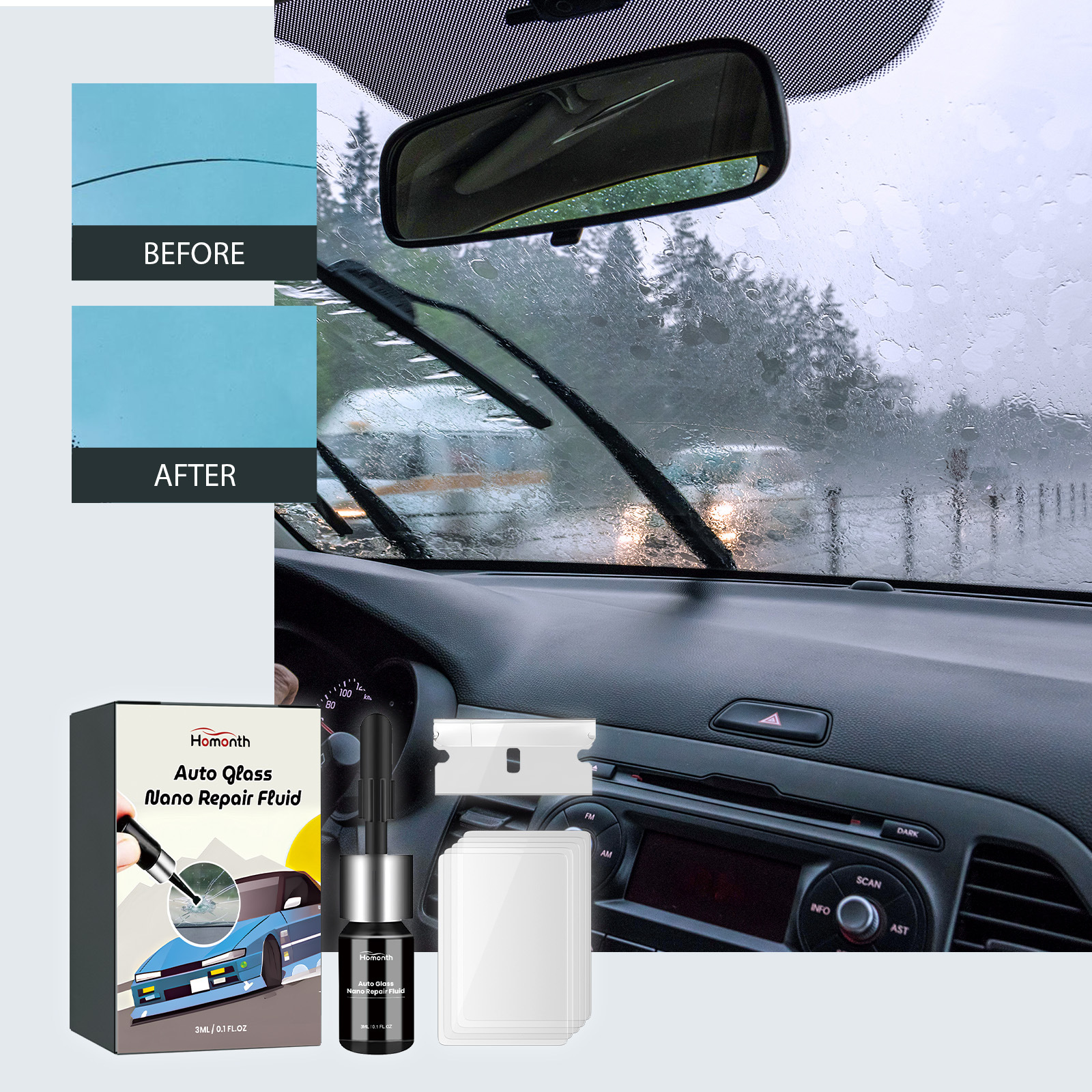 HOMONTH Средство для ухода за автомобильными стеклами: нано-гель для восстановления царапин и улучшения обзора на лобовом стекле