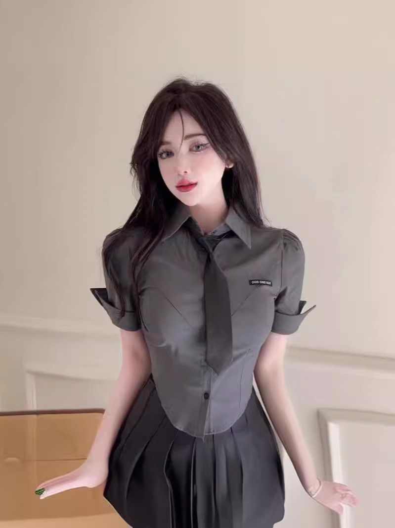 Японский стиль: сексуальный комплект униформы JK с рубашкой-поло на завязках на талии, утягивающей фигуру, и плиссированной юбкой