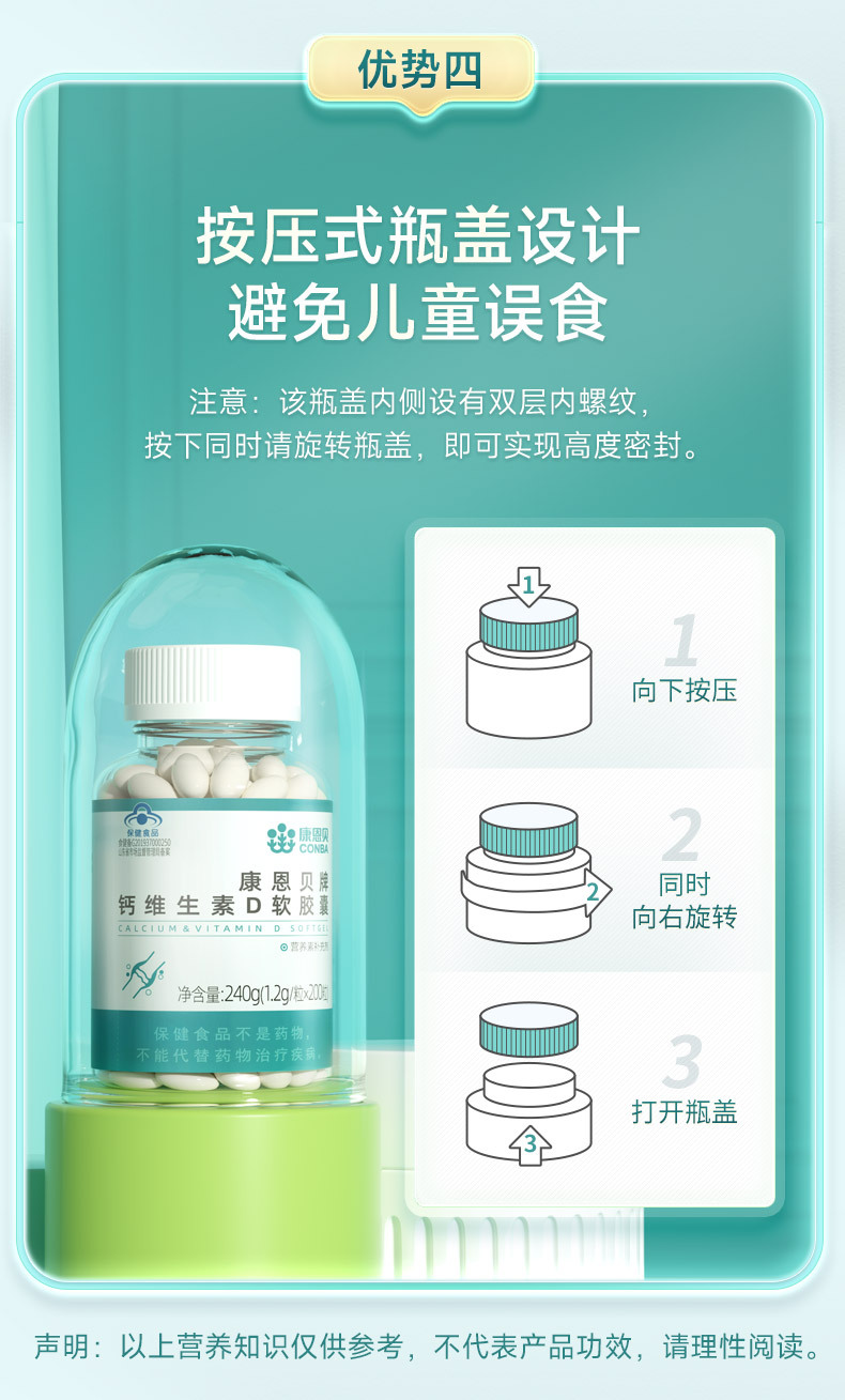 200 капсул Connbei Кальций D Мягкие капсулы Жидкий кальций Витамин D Кальций Карбонат кальция таблетки Средний и пожилой мужчина и женщина