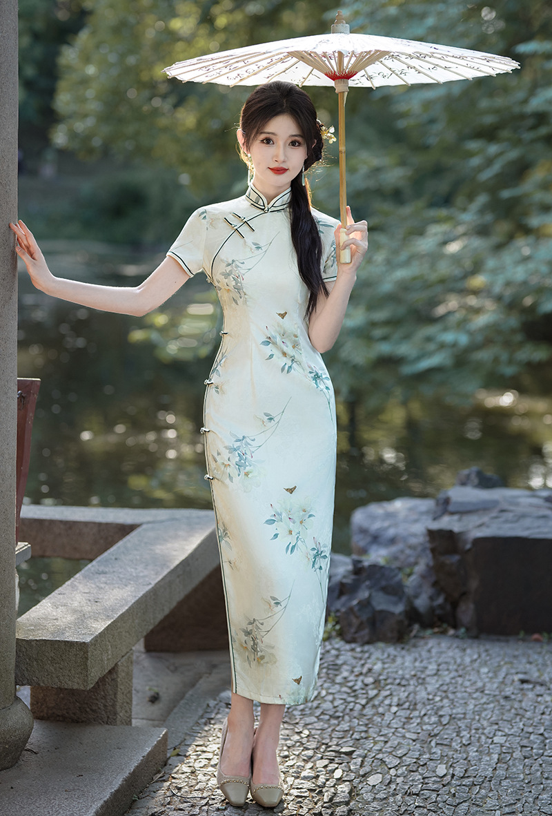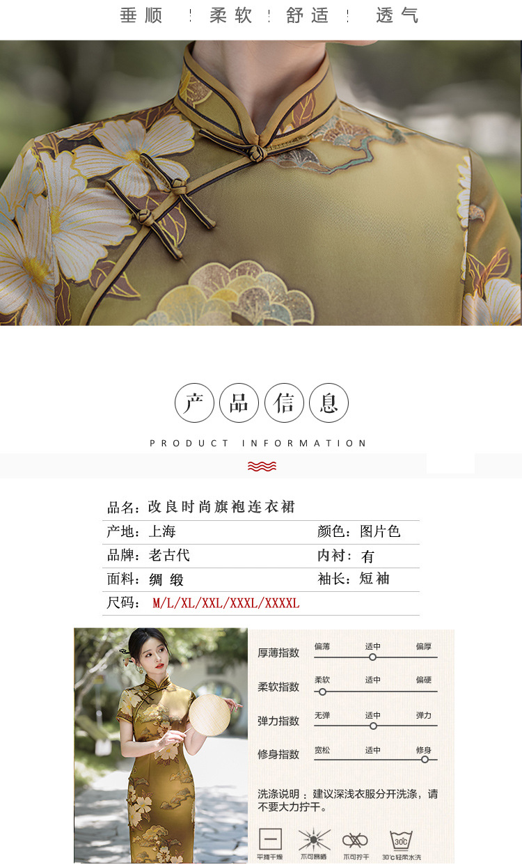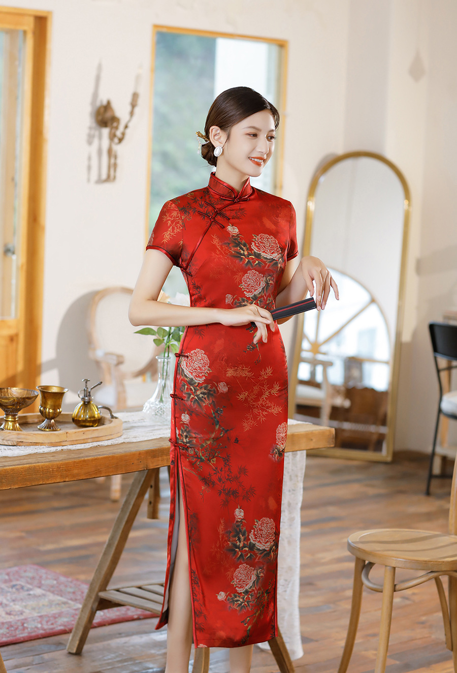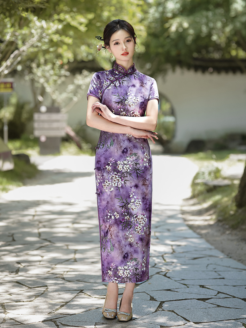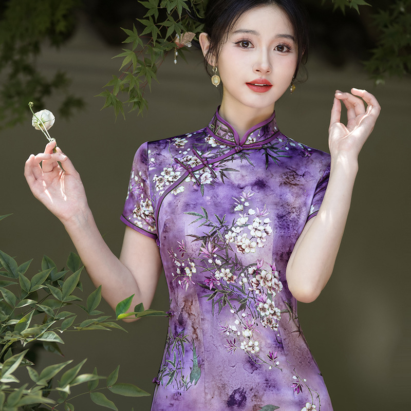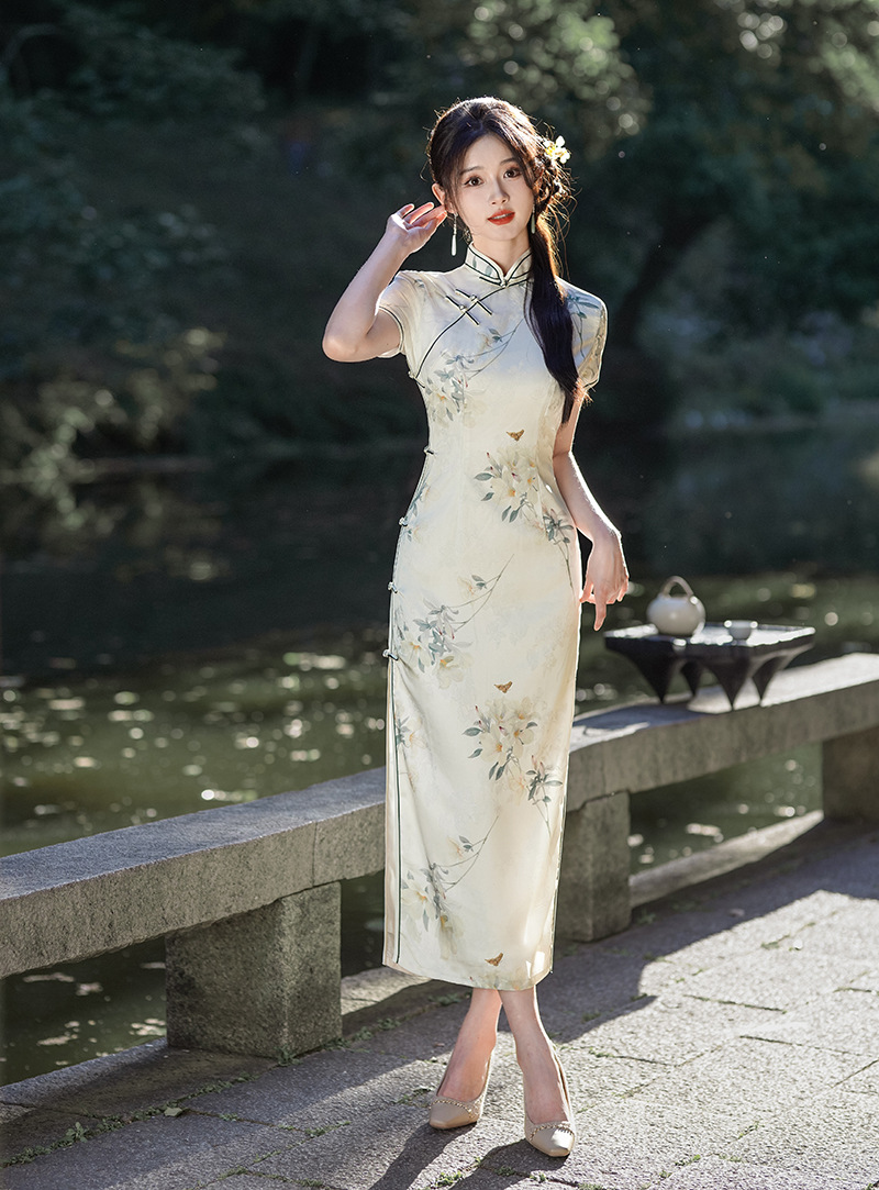 2025 Новый китайский стиль, лето и осень, новая длинная юбка Cheongsam, атласное платье в стиле ретро, тонкое банкетное двухслойное платье, оптовая продажа