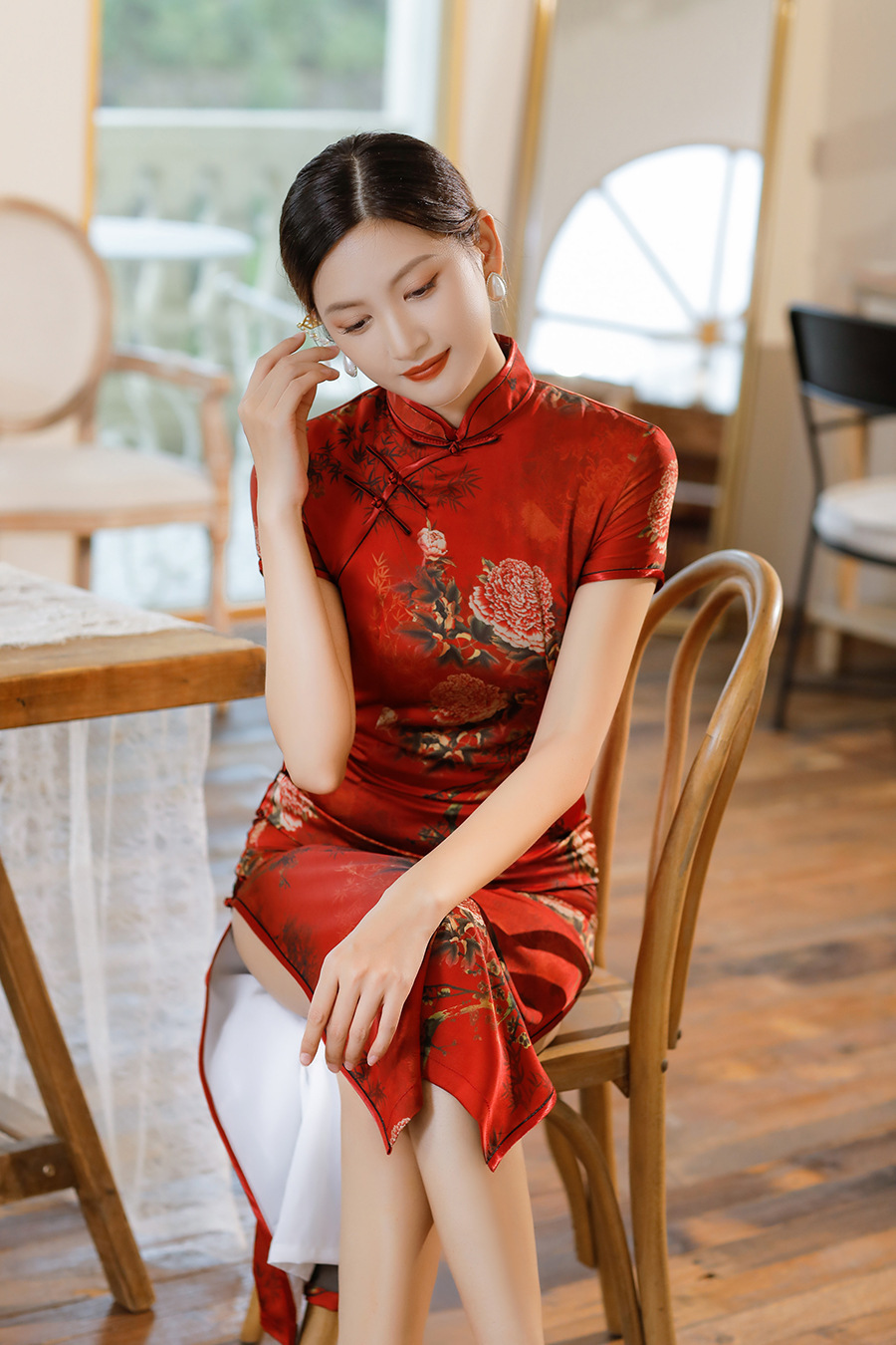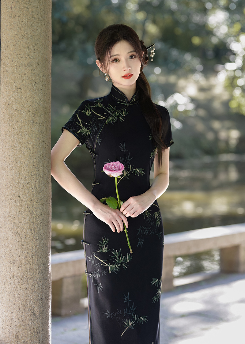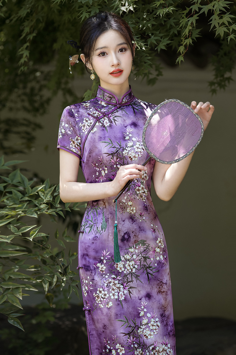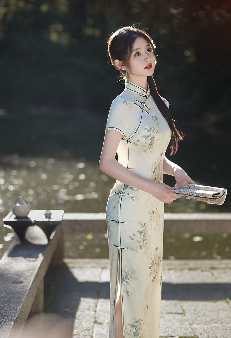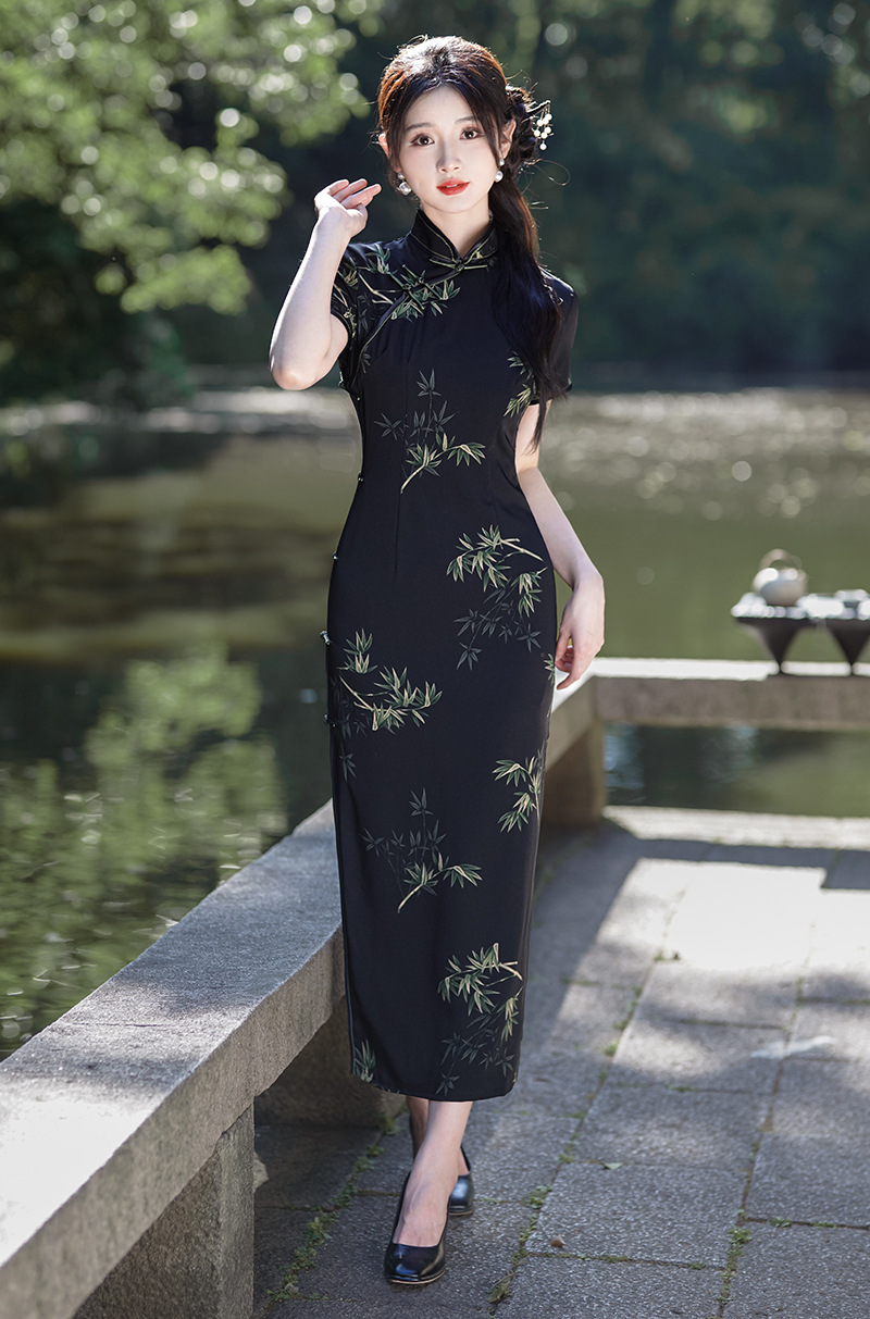 2025 Новый китайский стиль, лето и осень, новая длинная юбка Cheongsam, атласное платье в стиле ретро, тонкое банкетное двухслойное платье, оптовая продажа