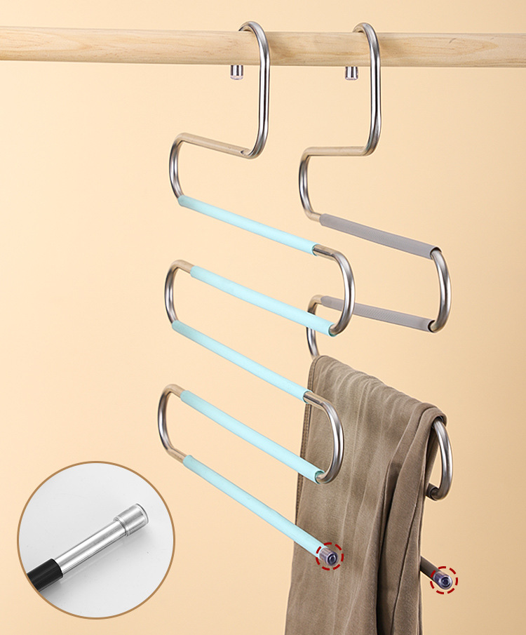Вешалка для брюк из нержавеющей стали (пять слоев) настоящего цвета; Вешалка для брюк из нержавеющей стали (пятислойная) модная и нескользящая - черная; Вешалка для брюк из нержавеющей стали (пять слоев), модная и нескользящая - мятно-зеленая.; Вешалка для брюк из нержавеющей стали (пять слоев), бархат черный