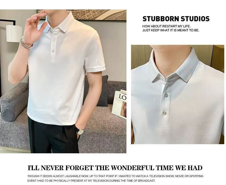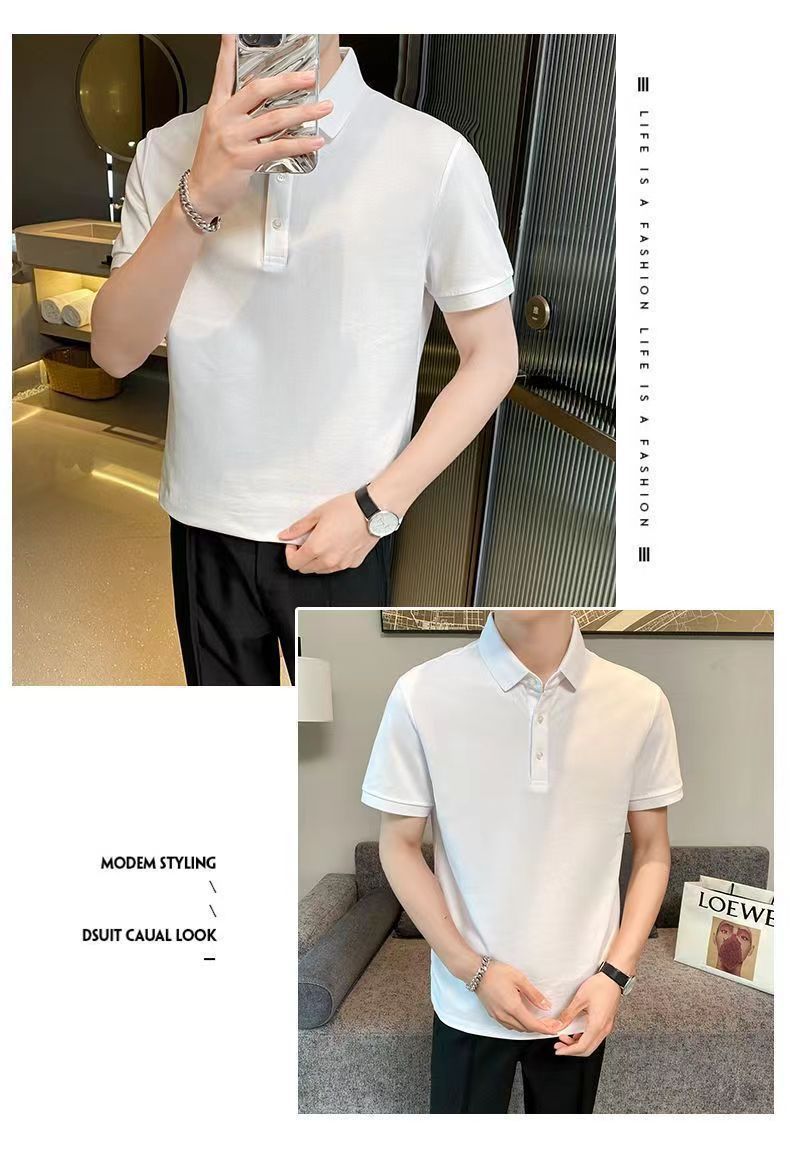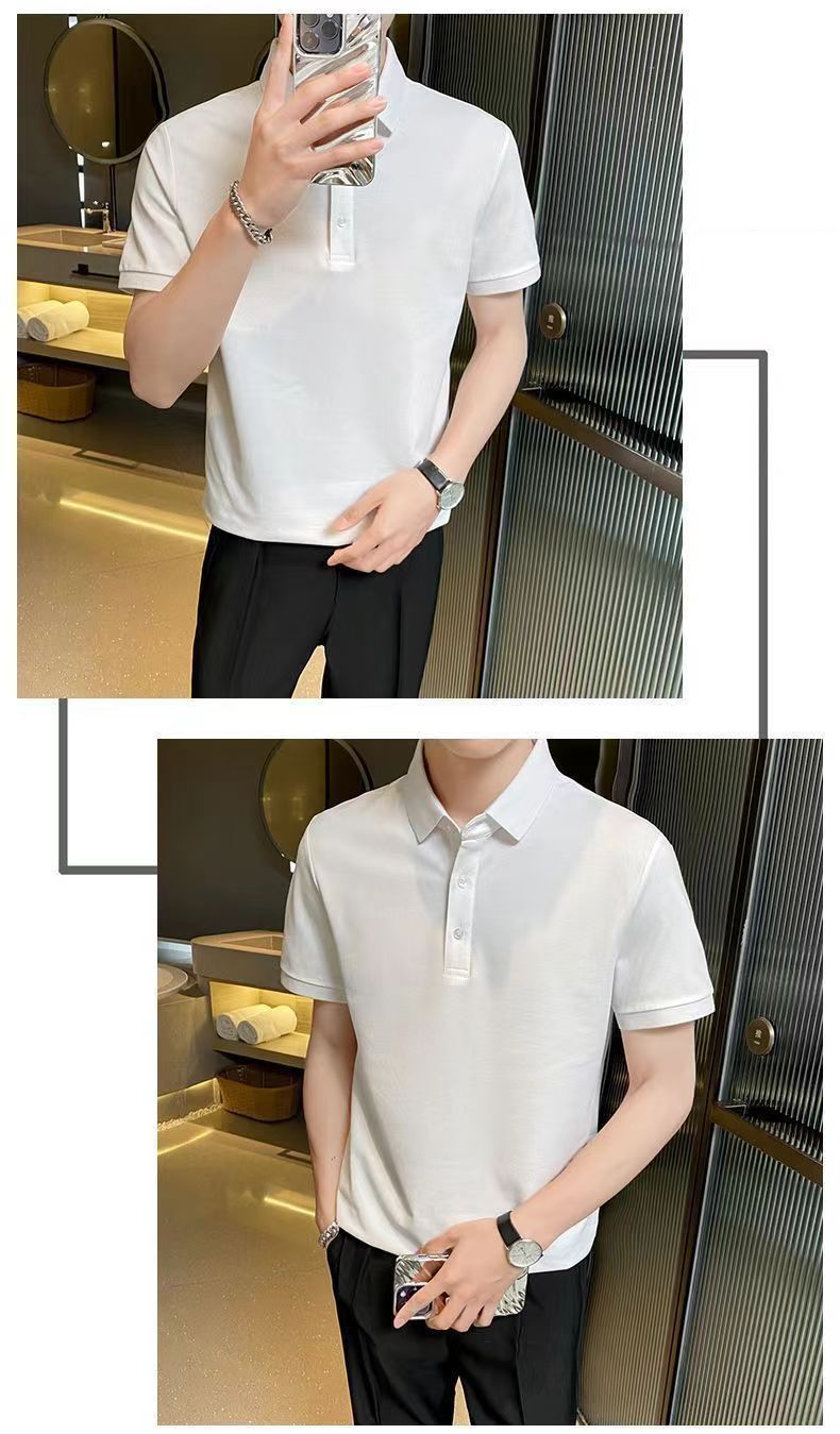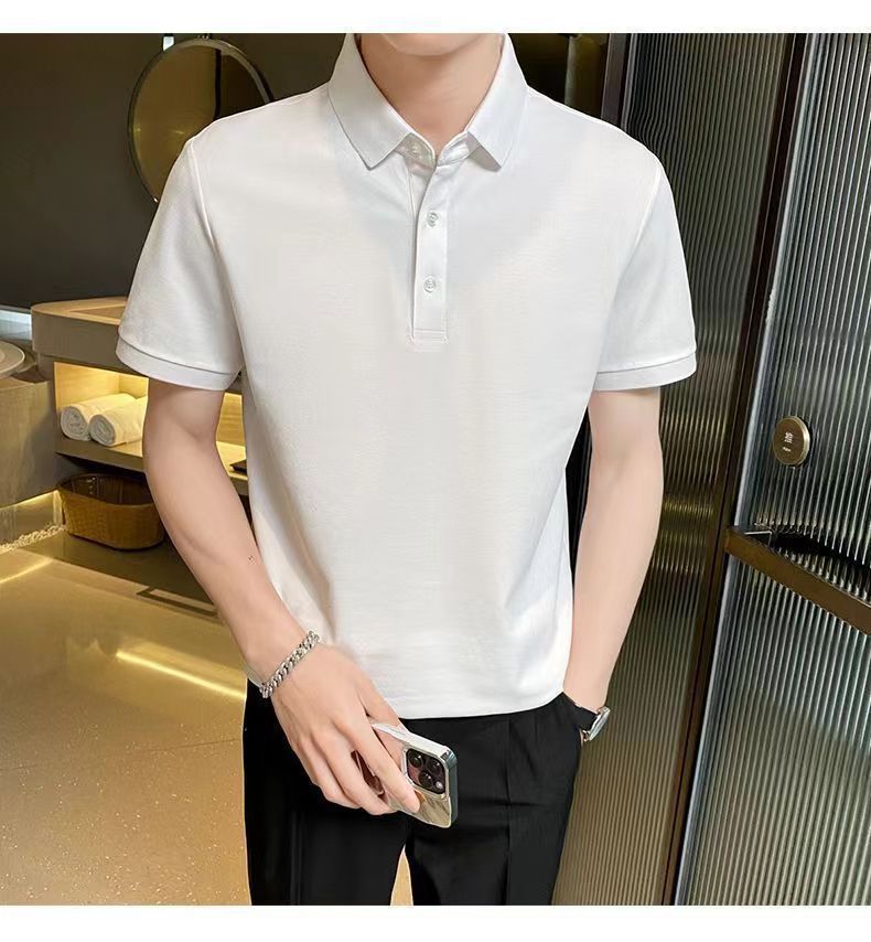 Летняя новая высококачественная сплошная молочная рубашка из бисера POLOMs для мужчин ведет тонкую модную футболку с короткими рукавами