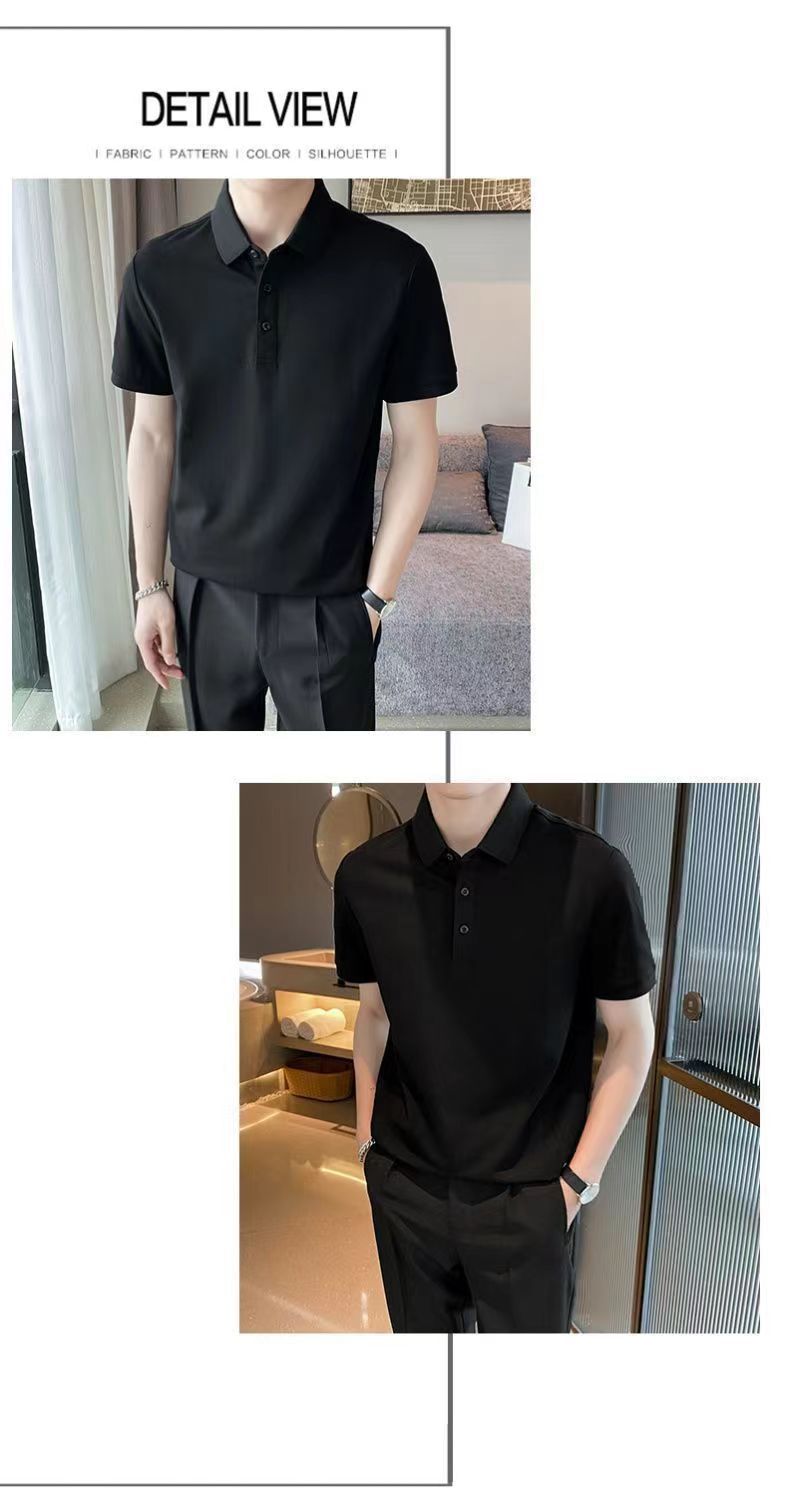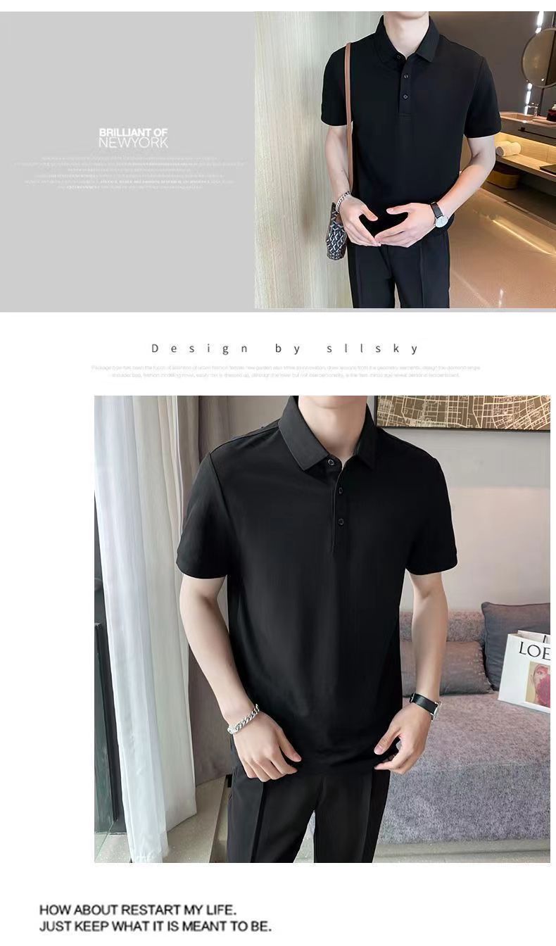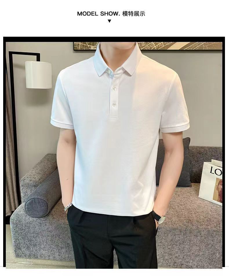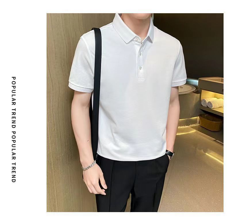 Летняя новая высококачественная сплошная молочная рубашка из бисера POLOMs для мужчин ведет тонкую модную футболку с короткими рукавами