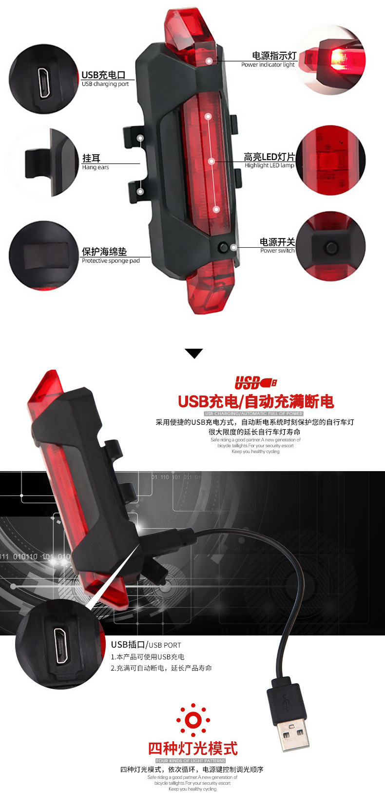 【品名】USB充电尾灯