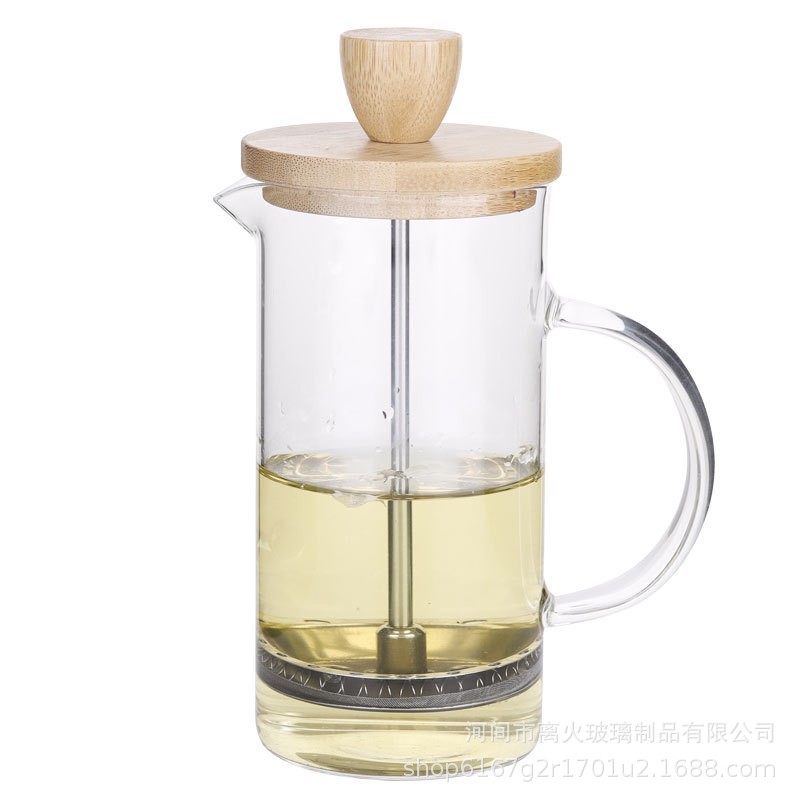 Кофейник-френч-пресс с деревянной крышкой, чайник из высококачественного боросиликатного стекла, кофейник-пресс из нержавеющей стали, чайник для холодного заваривания.