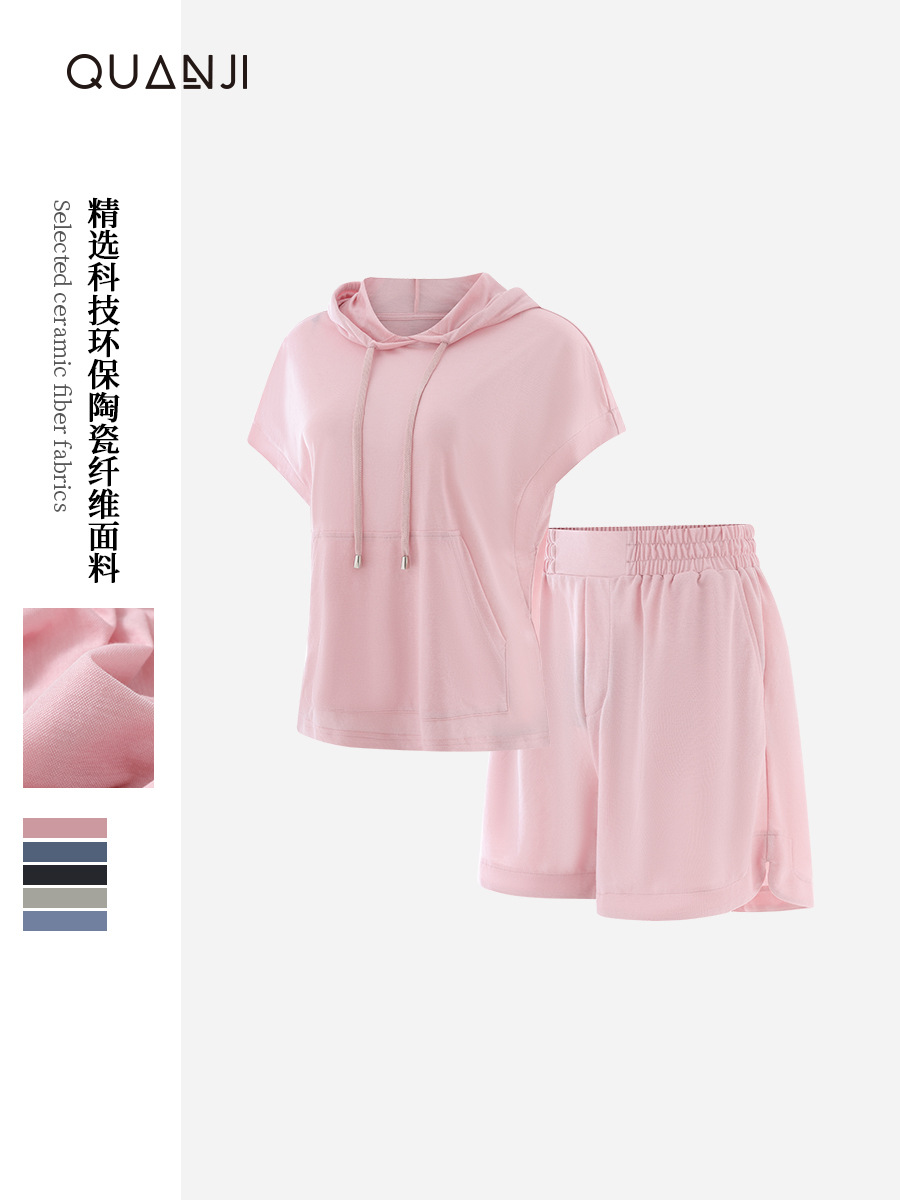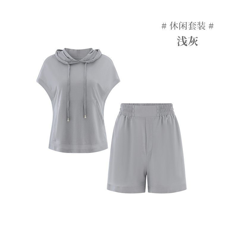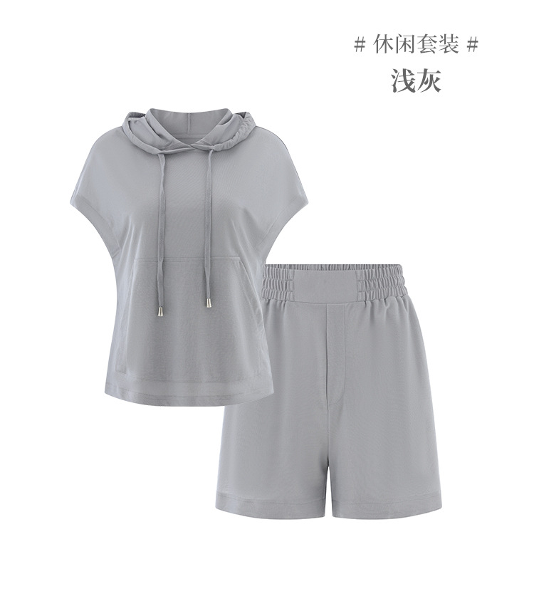 Женский комплект с короткими рукавами Летний новый короткий рукав с капюшоном свитера шорты солнцезащитный крем повседневный набор коротких шорт