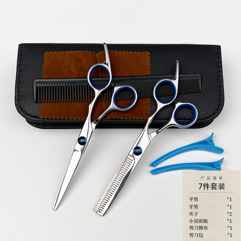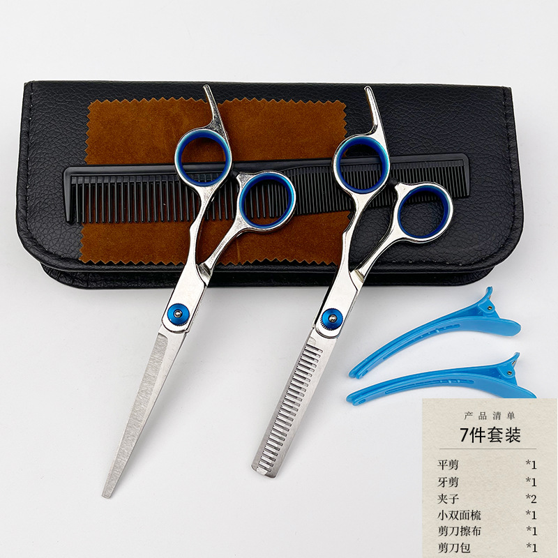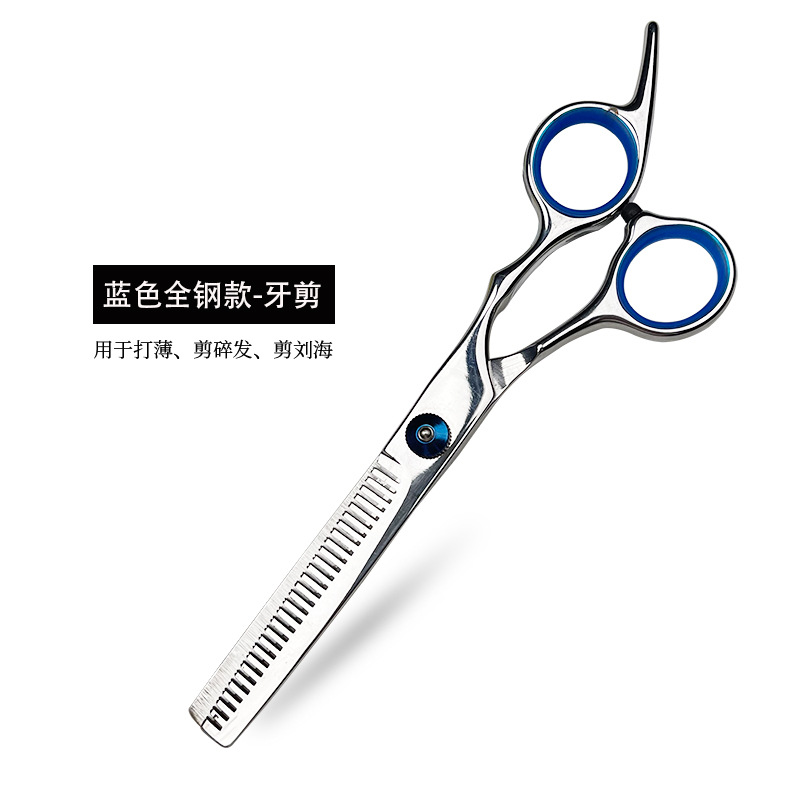 Синие винтовые ножницы для стрижки волос плоские зубные ножницы