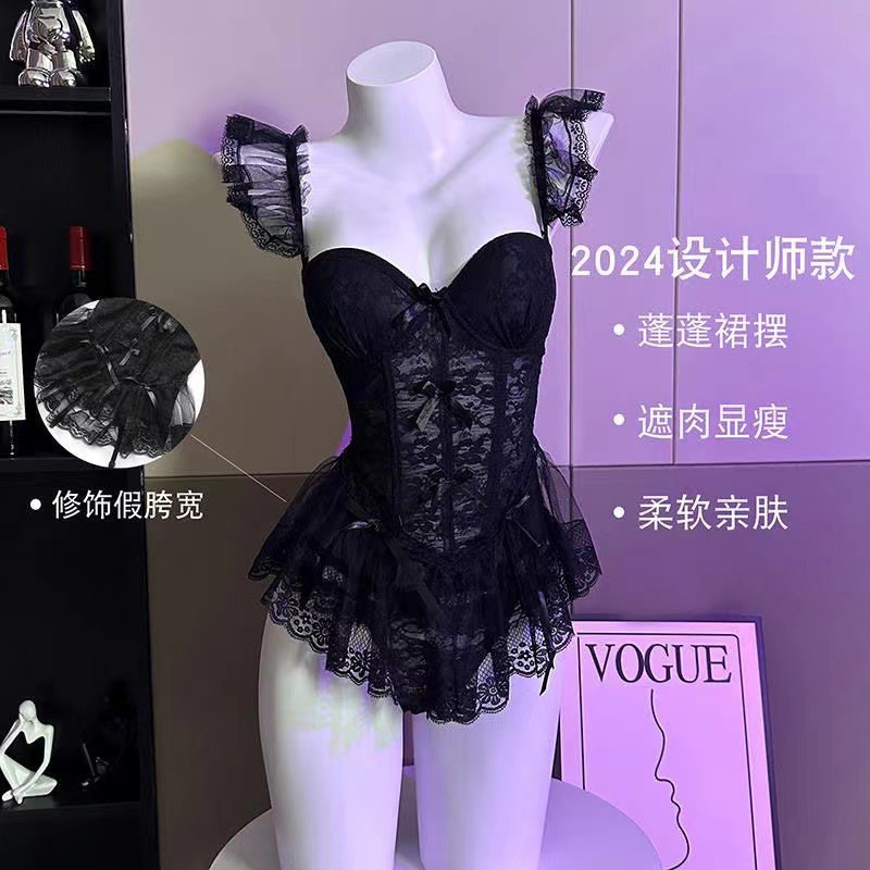 Сексуальная сладкая и милая стройная рыбья кость с корсетом с бантом и кружевом