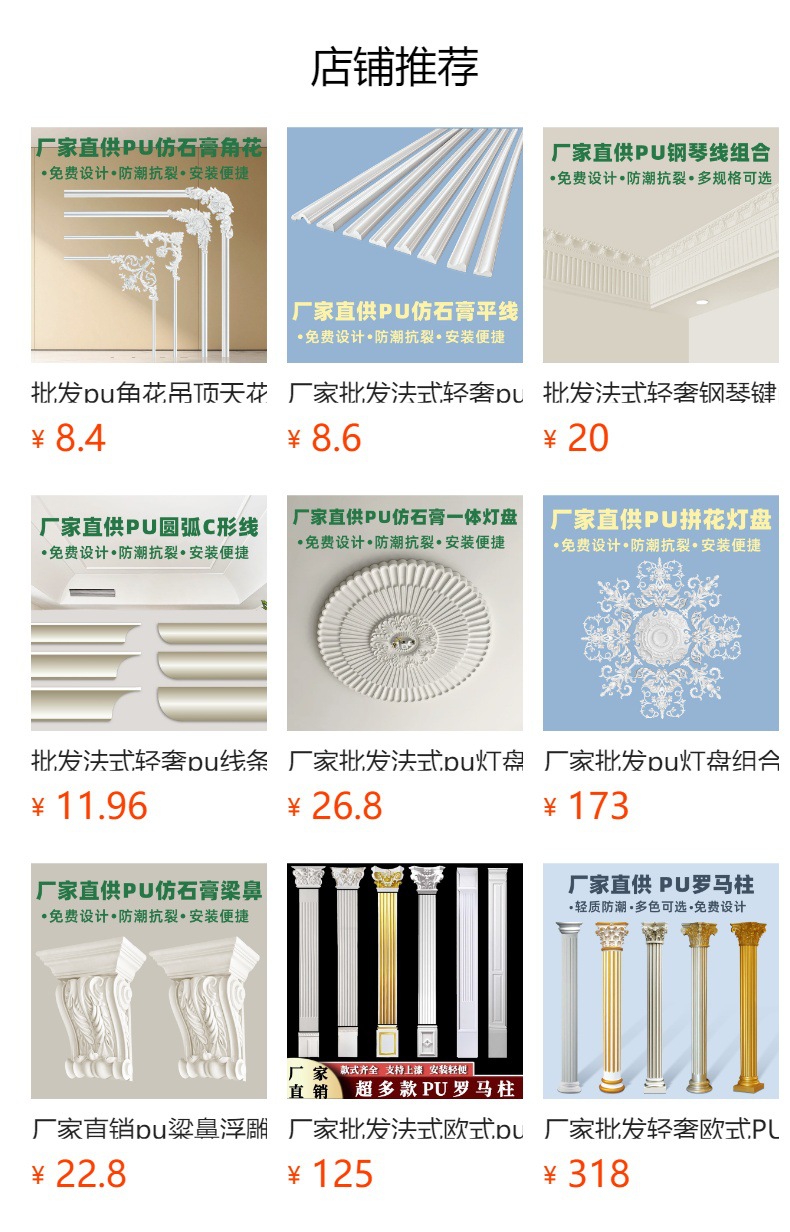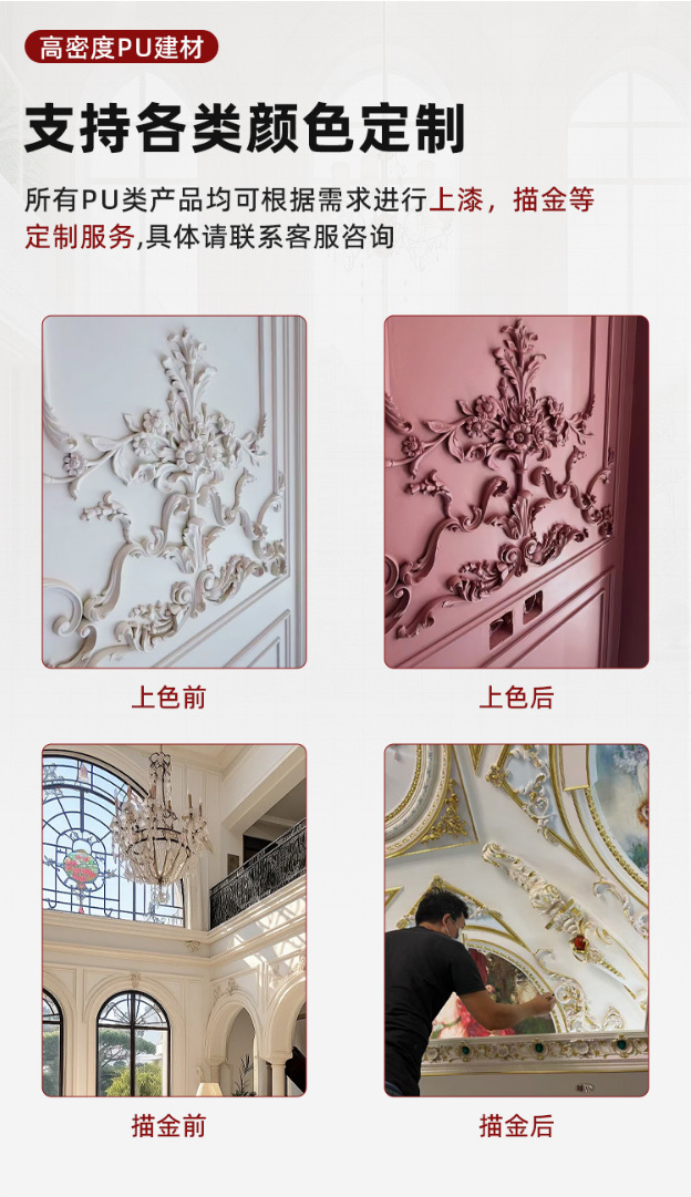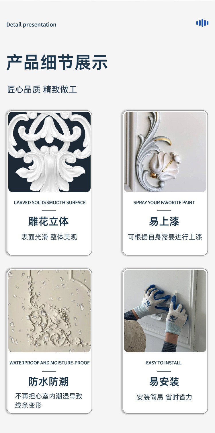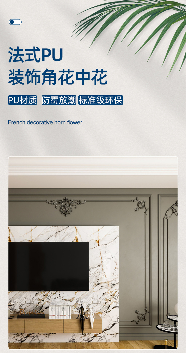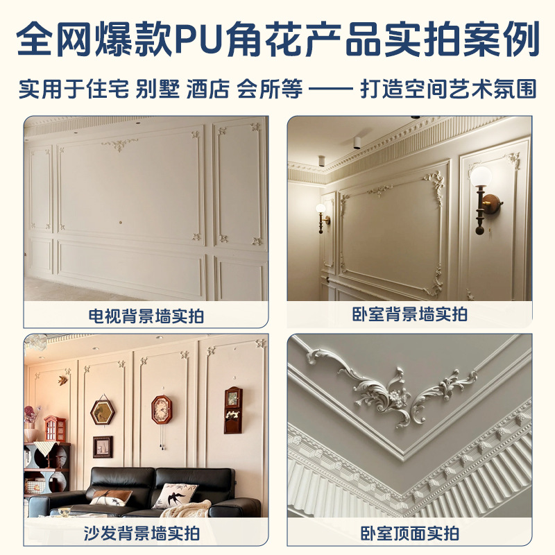 厂家直销轻奢简约pu角花墙面装饰欧式吊顶可上漆树脂线条组合套装