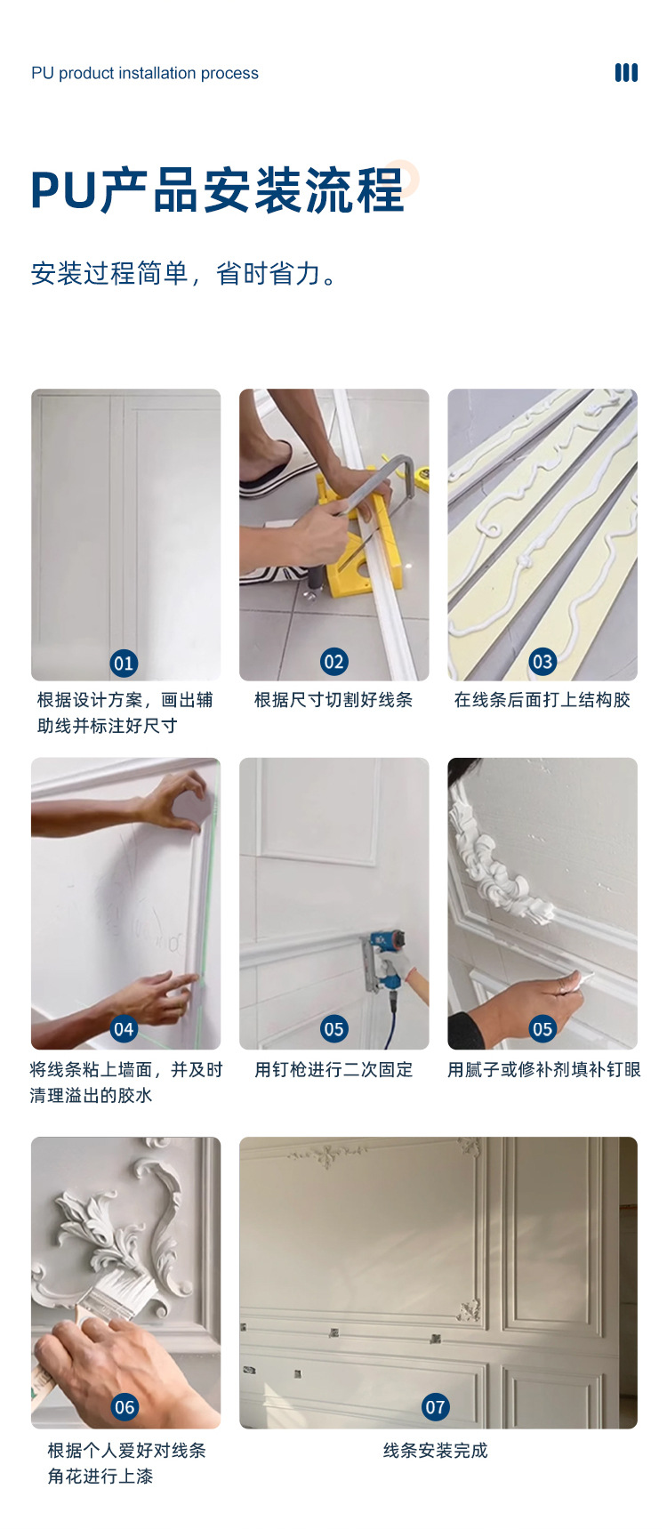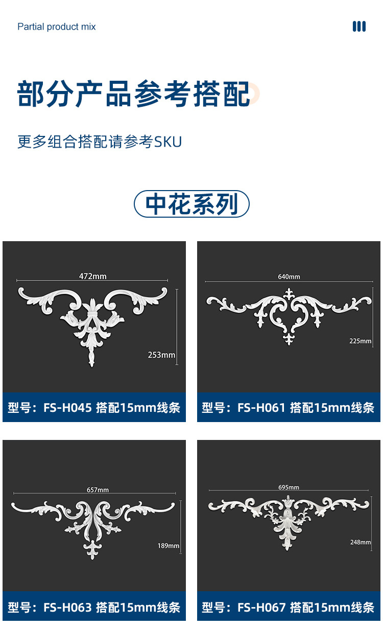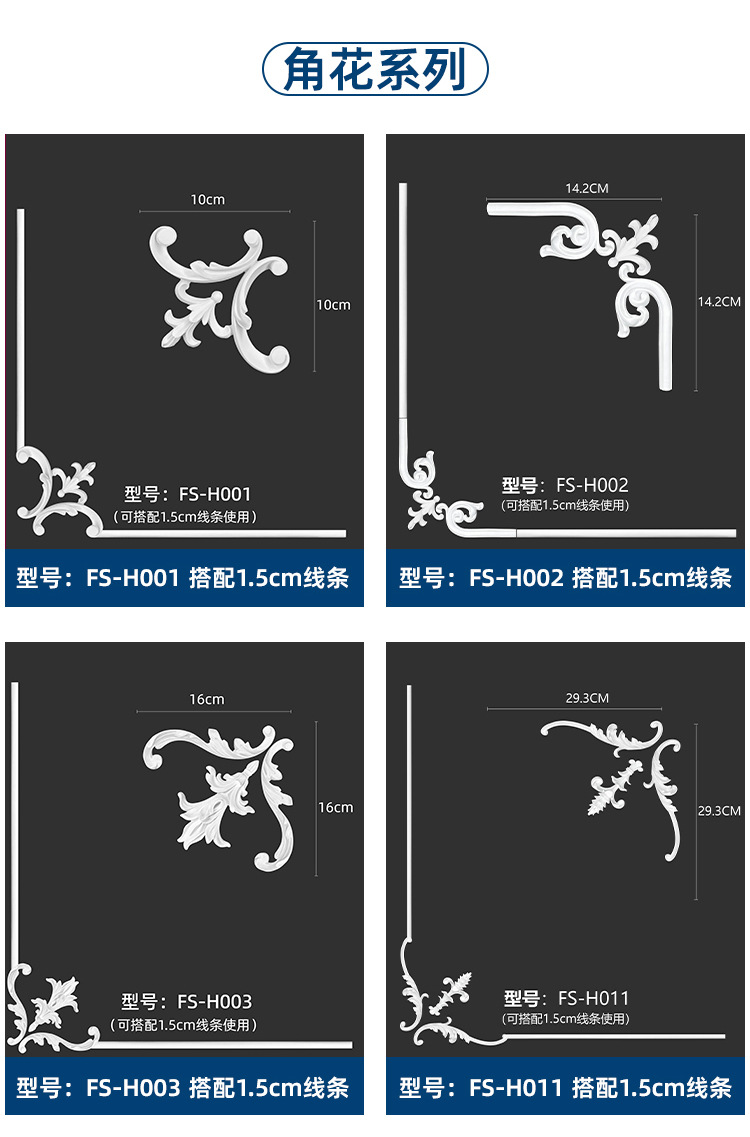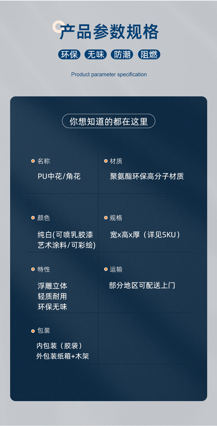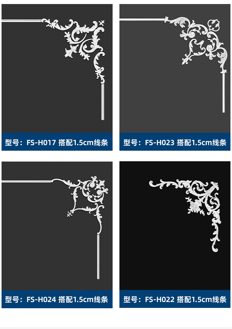 厂家直销轻奢简约pu角花墙面装饰欧式吊顶可上漆树脂线条组合套装