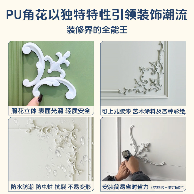 Легкий люкс и минимализм: угловая декоративная панель из ПУ для стен, потолок в европейском стиле, набор для покраски из смолы, влагостойкий.