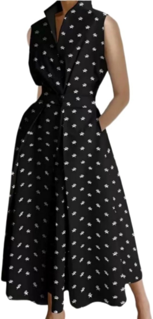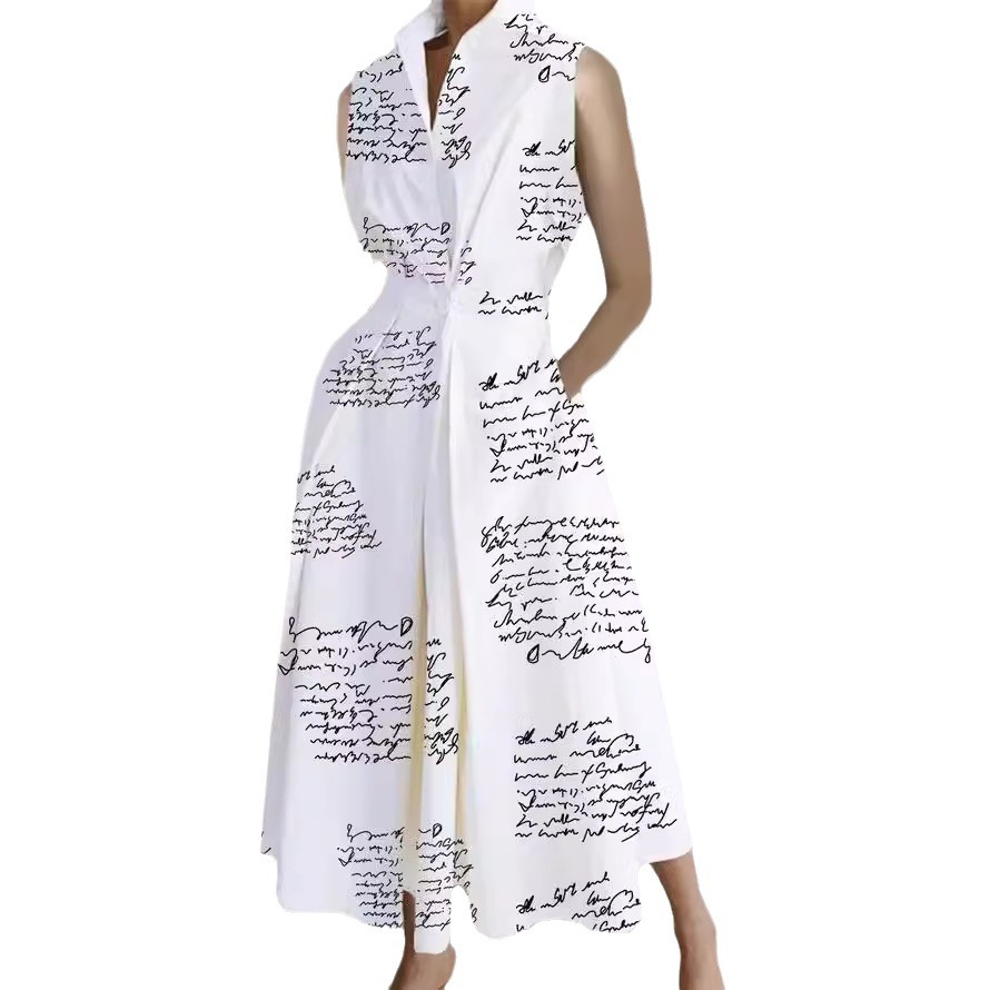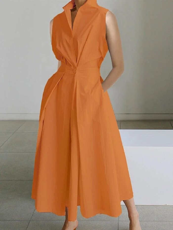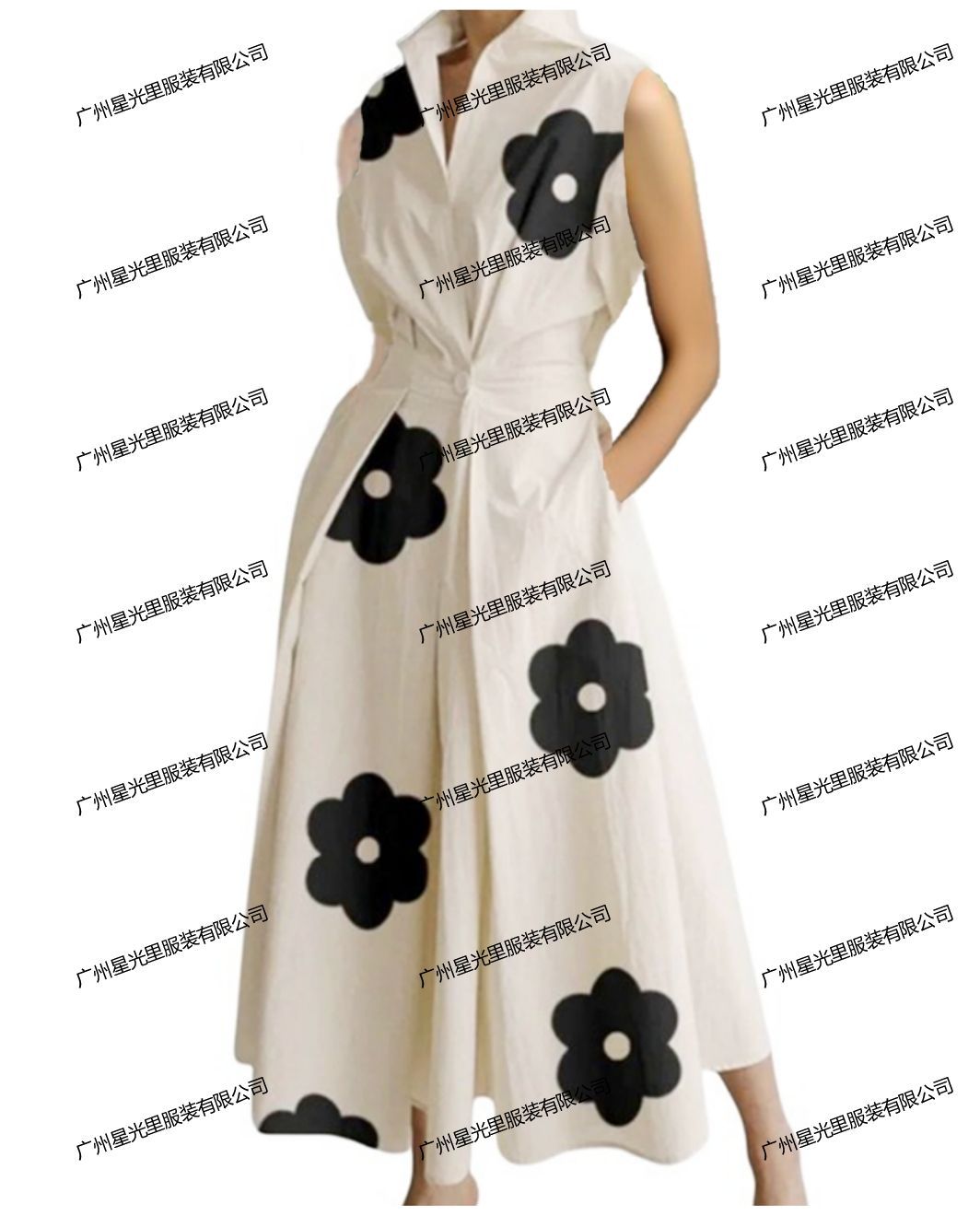 Европейское и Американское трансграничное платье 2024 Летняя новая пригородная мода сплошной цвет V-образный вырез Женское платье на пуговицах