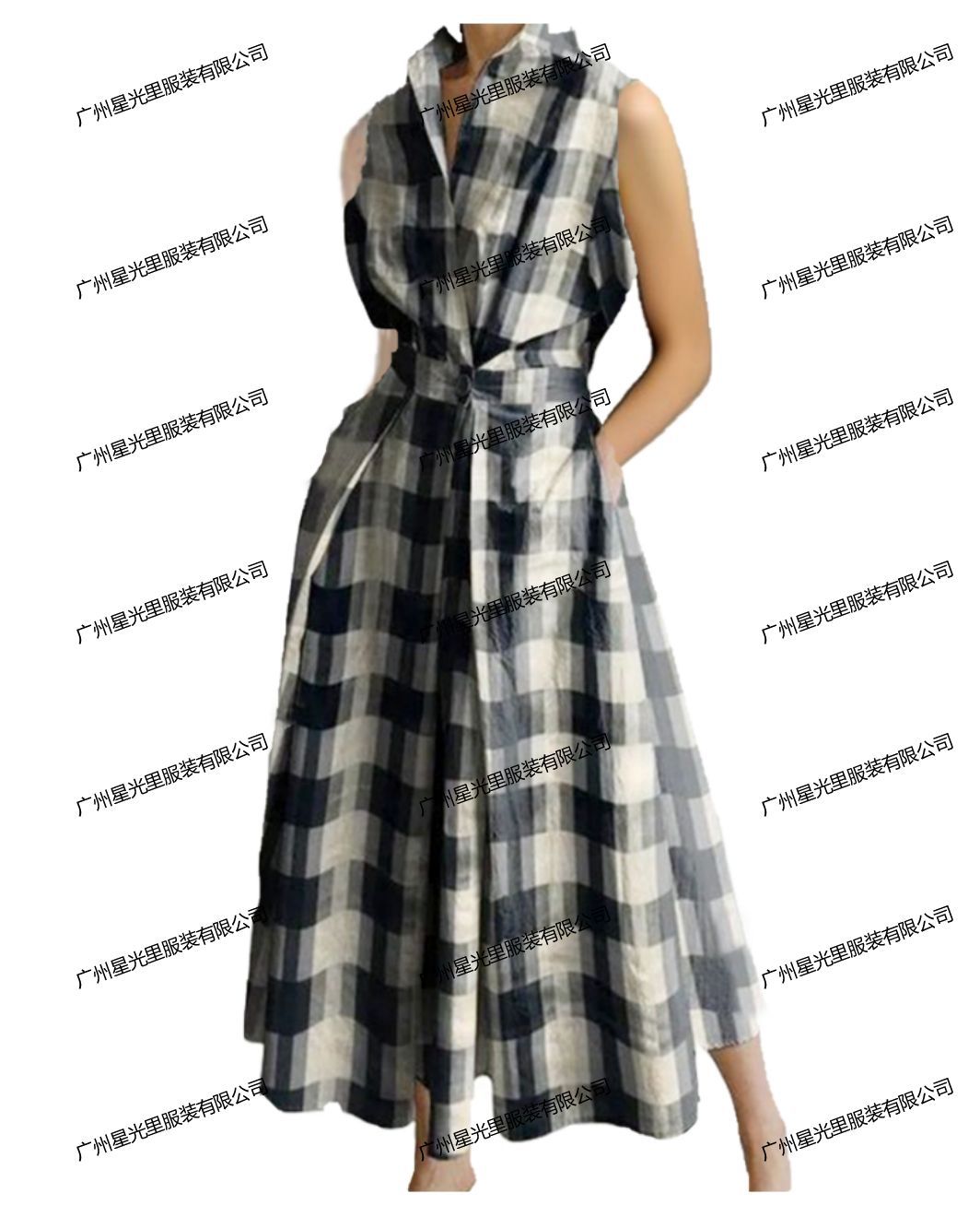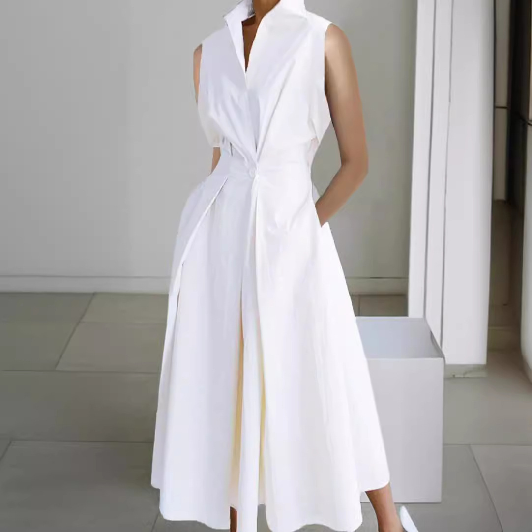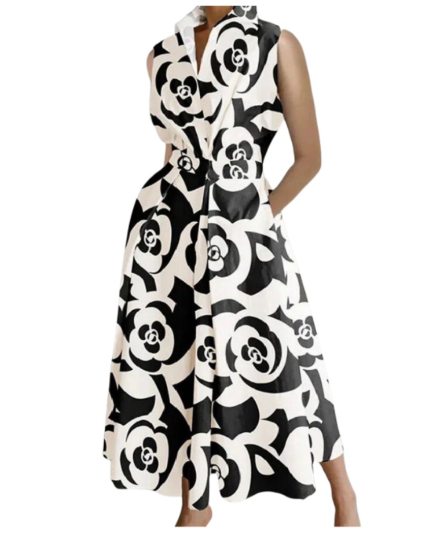 Европейское и Американское трансграничное платье 2024 Летняя новая пригородная мода сплошной цвет V-образный вырез Женское платье на пуговицах
