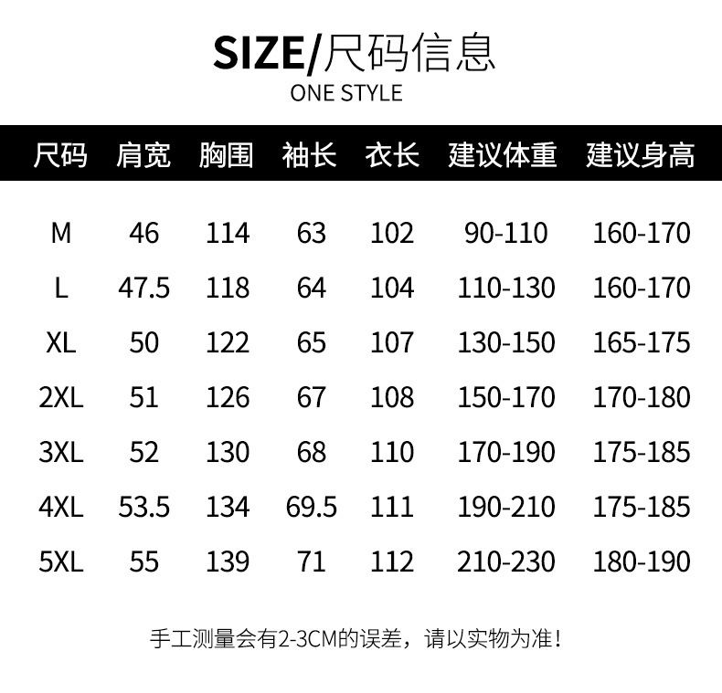 М【 45-55kg 】; Л【 55-65kg 】; ХЛ【 65-75kg 】; XXL【 75-85kg 】; XXXL【 85-95kg 】; 4XL【 95-105kg 】; 5XL【 105-115kg 】