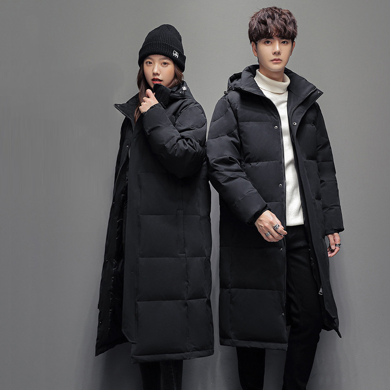Пуховик большого размера длинная новая пара мужская длинная колена толстая школьная форма женская пуховик печать LOGO