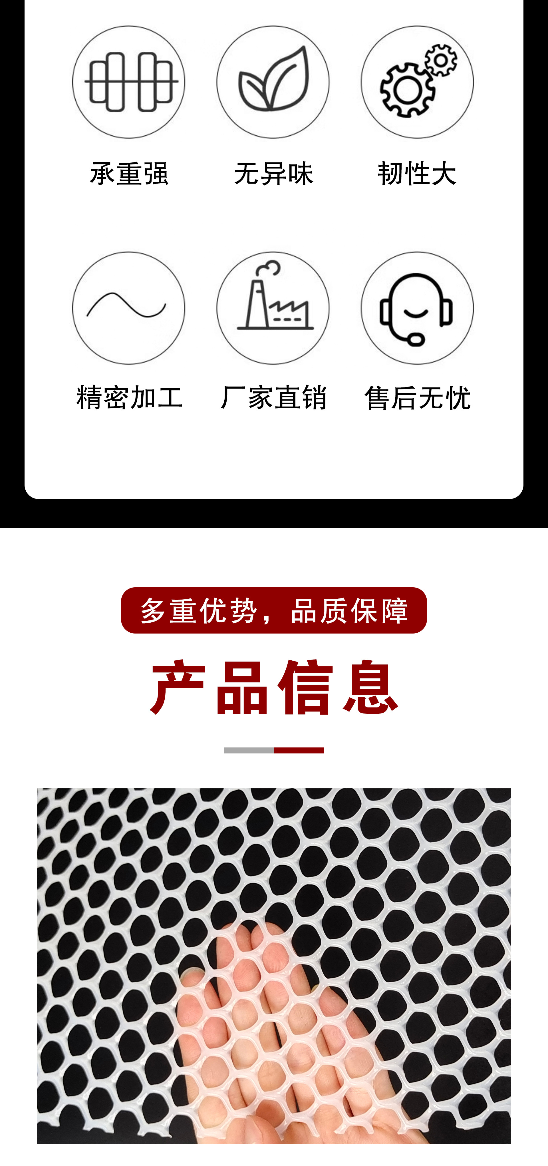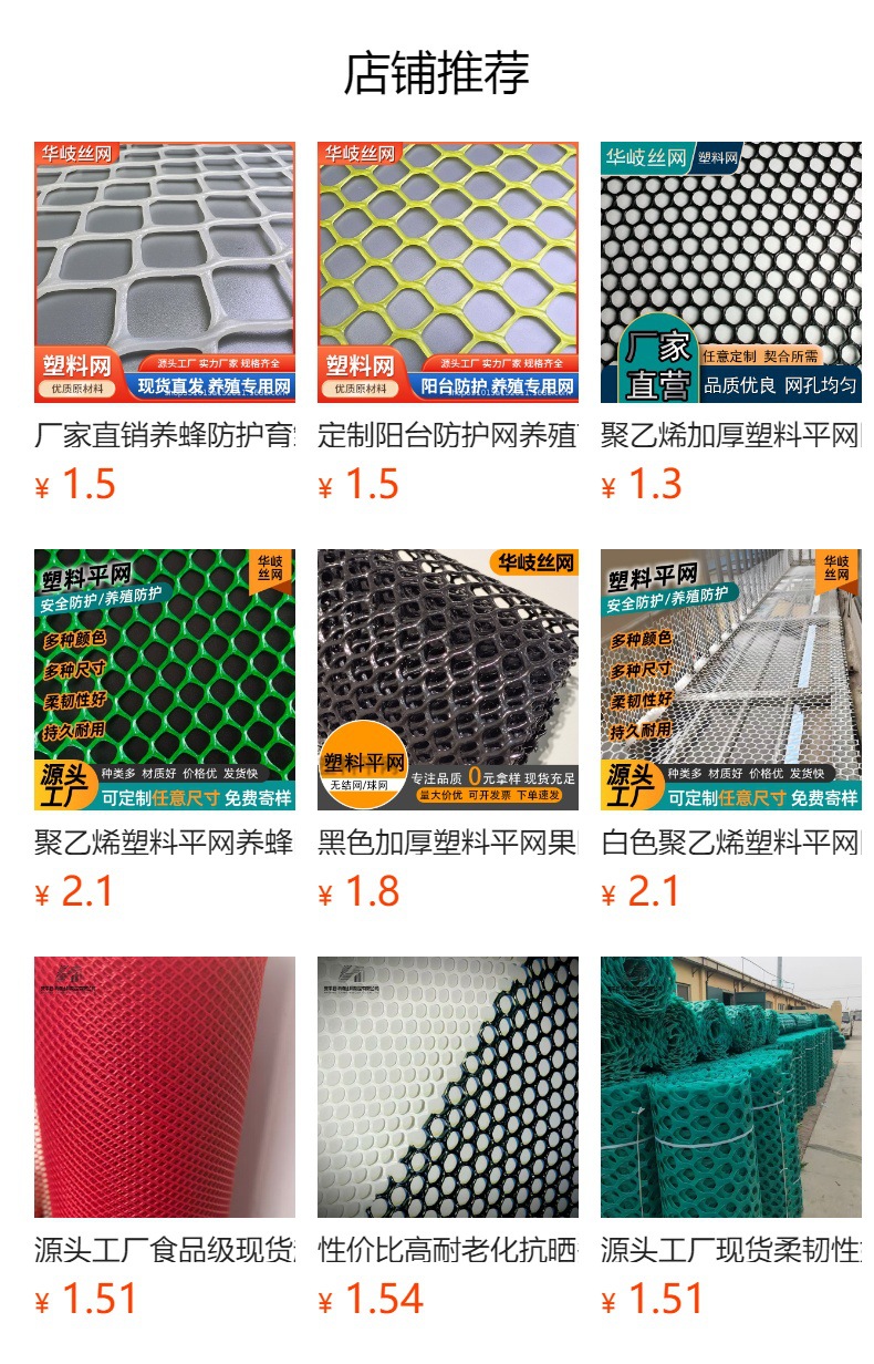 Завод-изготовитель продает только утолщенные защитные сетки для балконов, утолщенные пластиковые сетки, ромбовидные сетки, изолирующие пластиковые сетки для прудов.