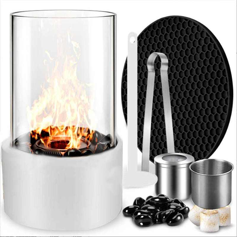 Чёрный камин + Чёрный камень + Стакан для алкоголя + Силиконовый коврик + Чёрный зажим; Белый камин + черный камень + стакан для спирта + силиконовая подставка + черный зажим